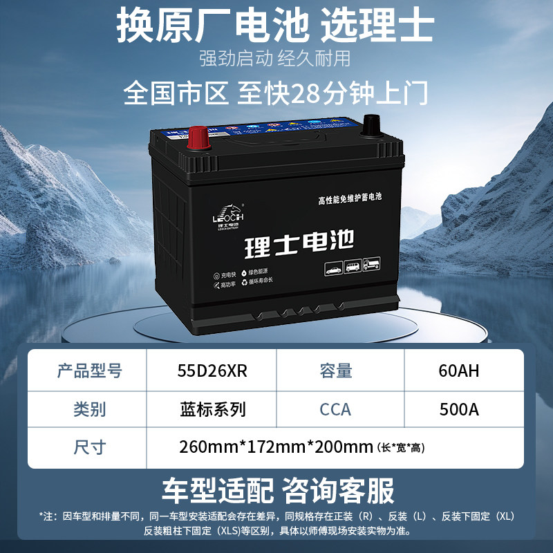 理士汽车电瓶蓄电池55D26XR适用于丰田哈弗长城金杯瑞虎江淮原装