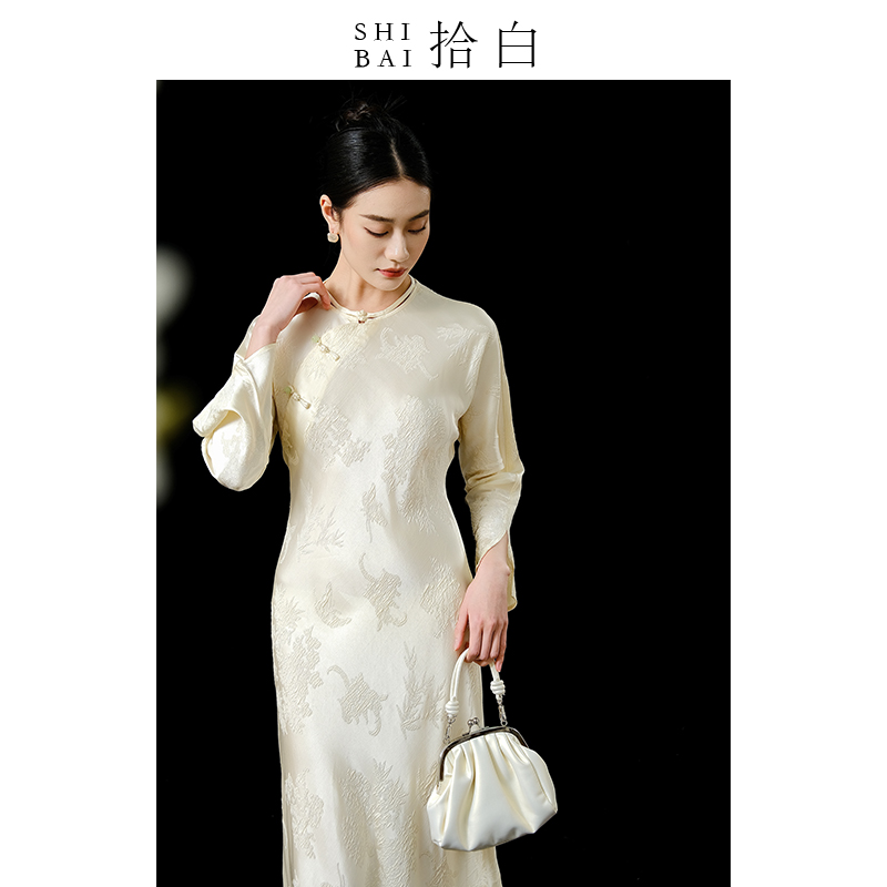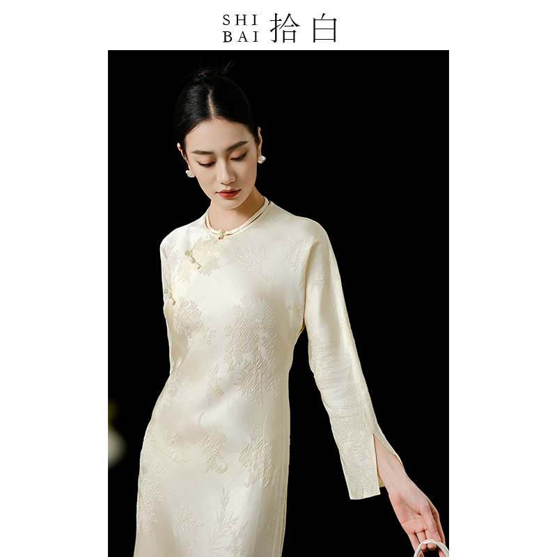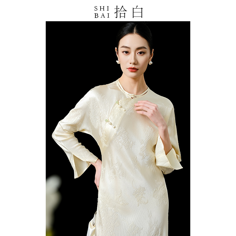 SHIBAI拾白新中式2025年春夏新款气质晨袍复古改良修身旗袍连衣裙