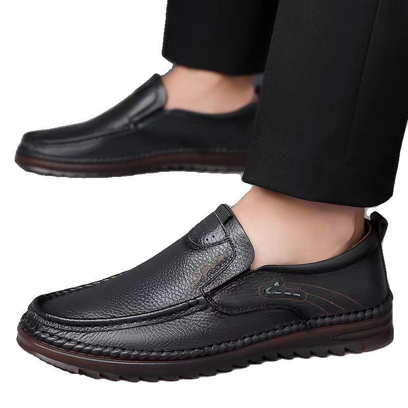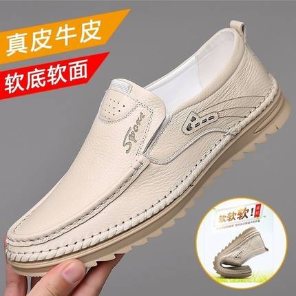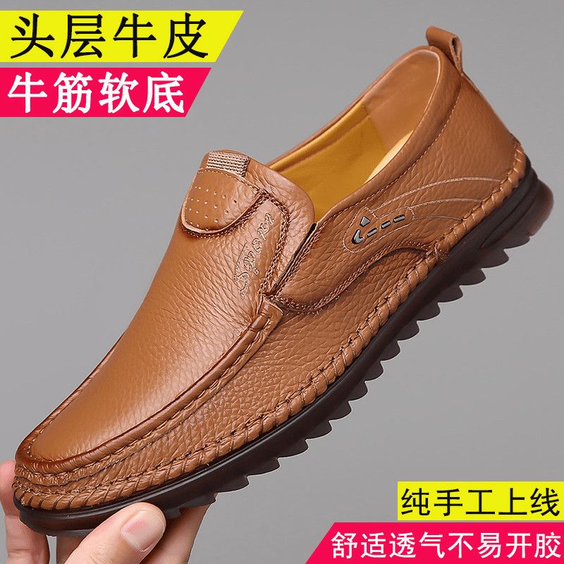 男士头层牛皮商务休闲皮鞋牛筋软底一脚蹬懒人中年爸爸鞋轻便男鞋