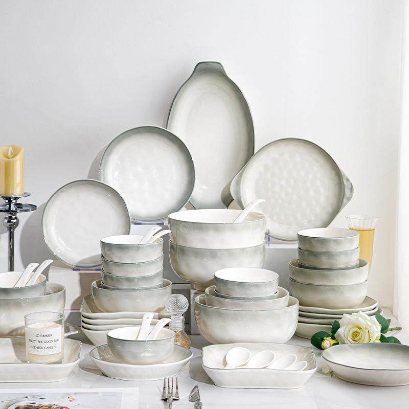 陶瓷碗盘套装家用高级感渐变烟蓝釉下彩米饭碗汤面碗盘子餐具套装