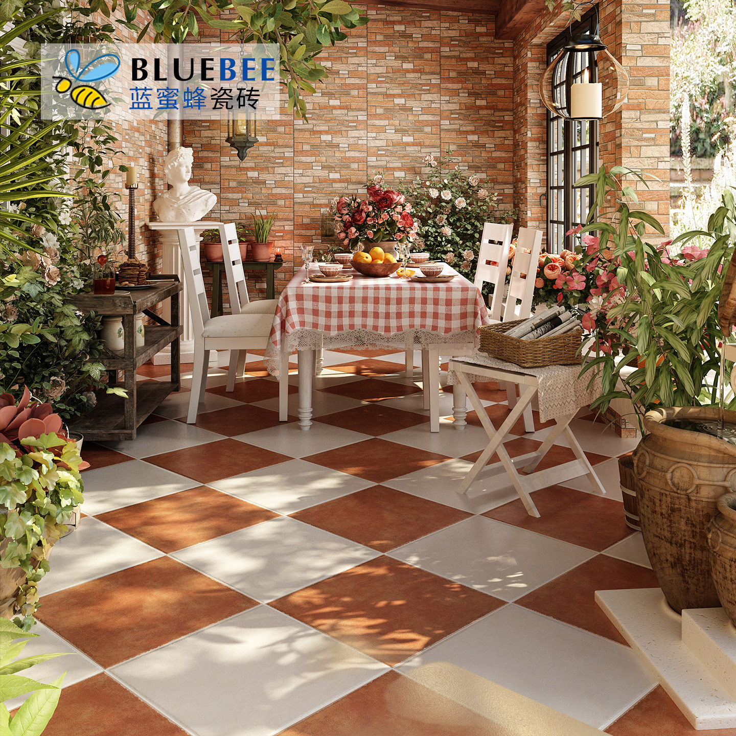 蓝蜜蜂法式直角仿古地砖500别墅客厅花园美式田园瓷砖国标认证