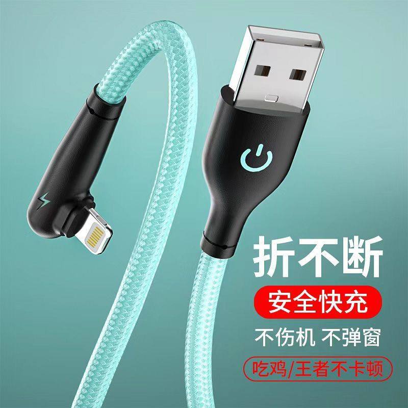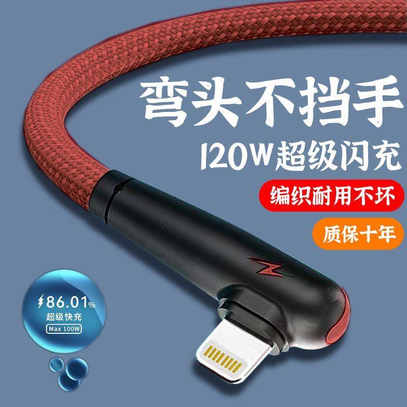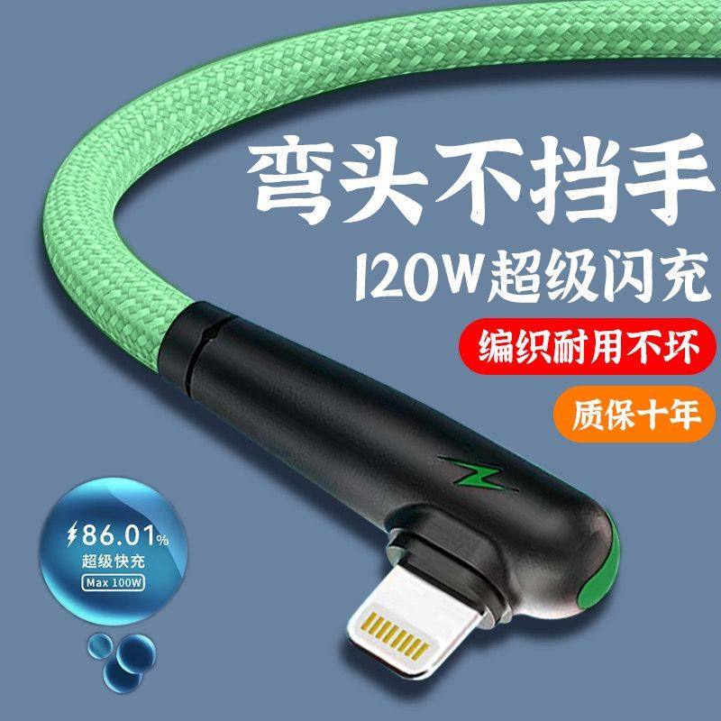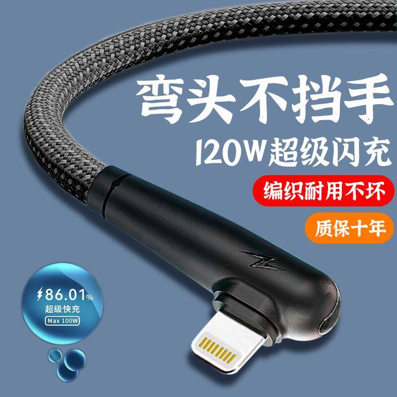 适用于苹果快充电线弯头手游闪充Phone6s7plus8/12/1314数据线2米