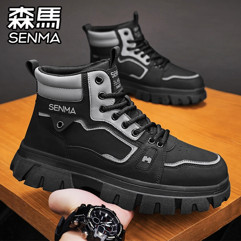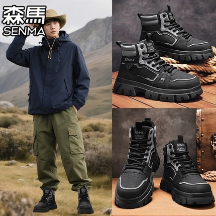 森马劳保男鞋秋季户外登山防滑耐磨上班工作男士运动黑色马丁靴子