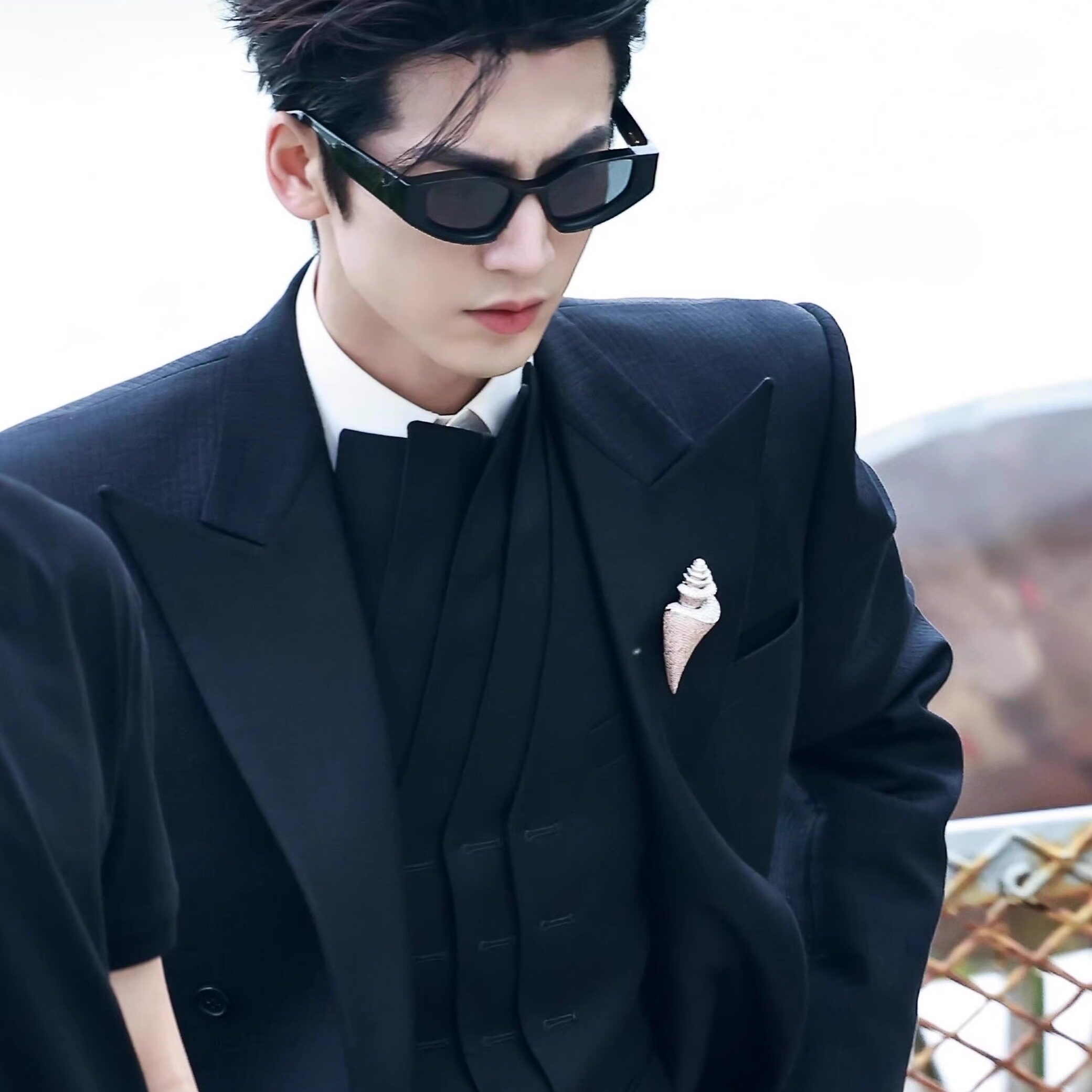 张凌赫明星同款黑色精致西服套装