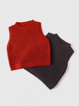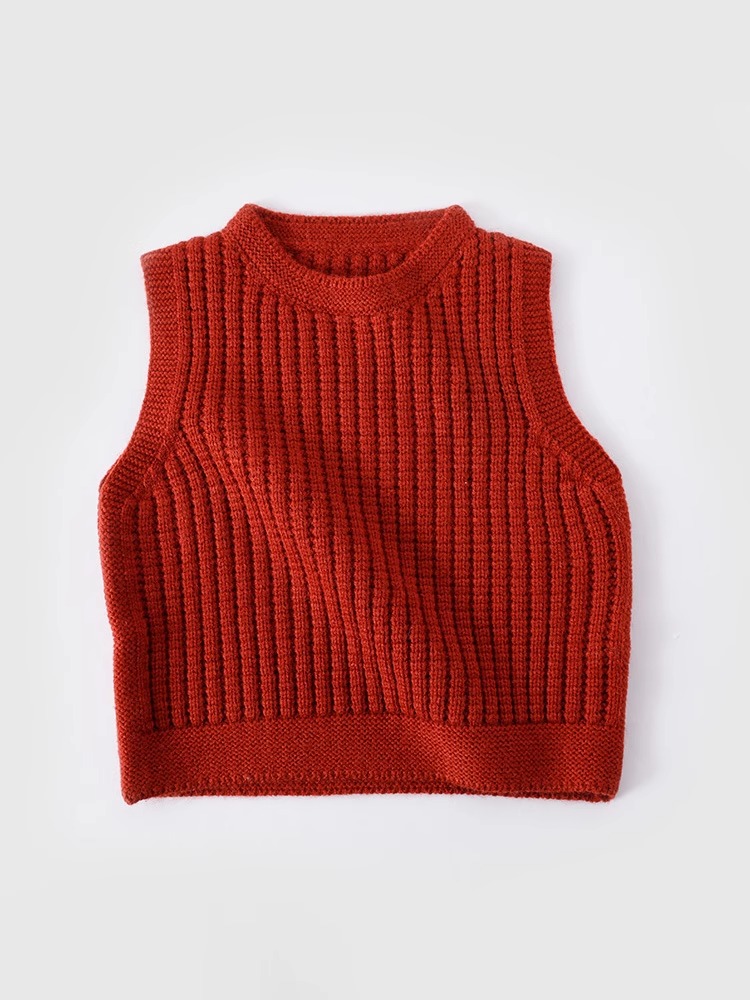 宝宝背心秋冬内穿儿童针织衫马甲毛衣女童2024新款红色男童红圆领