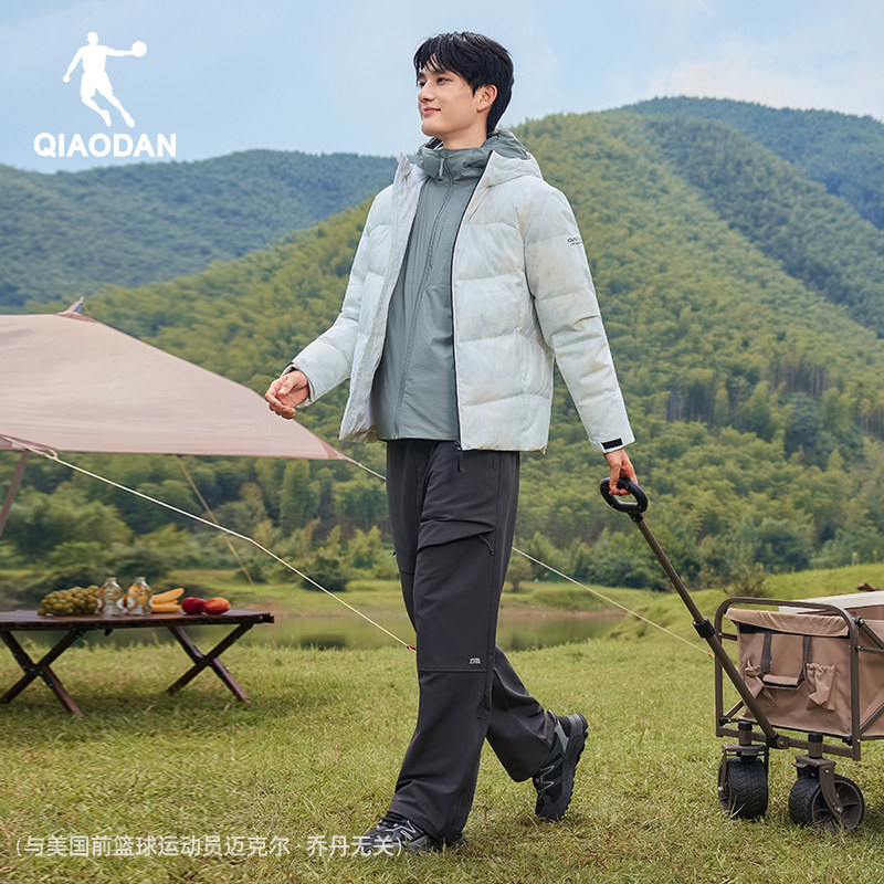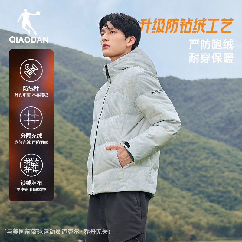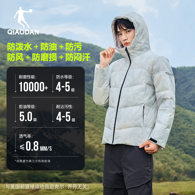 乔丹三防满印羽绒服男士连帽抗静电外套冬季新款户外防风防水夹克