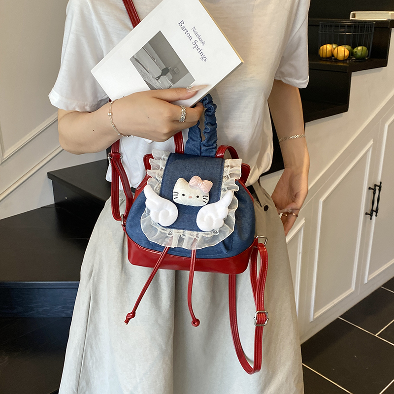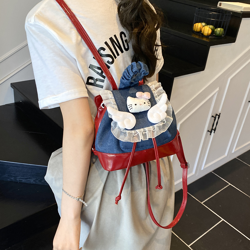 2025新款可爱牛仔撞色双肩包包女ins小背包手提小众多巴胺书包潮