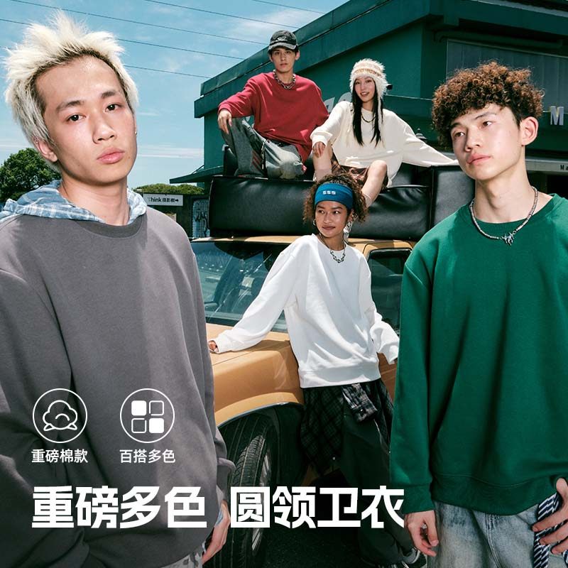 回力春秋季薄款男士潮流圆领卫衣新款中国古风潮牌学生无帽外套S