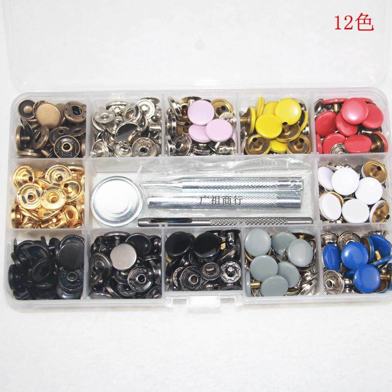 12色彩色四合扣633#金属四合扣+安装工具按扣扣子金属纯铜纽扣子