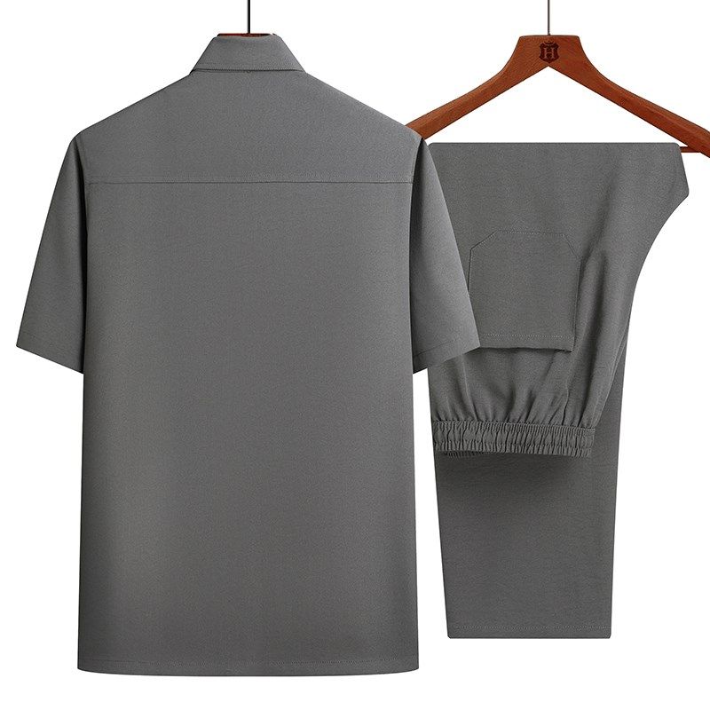 夏季男士中老年人短袖套装老人爷B爷唐装爸爸中国风中式衬衫两件