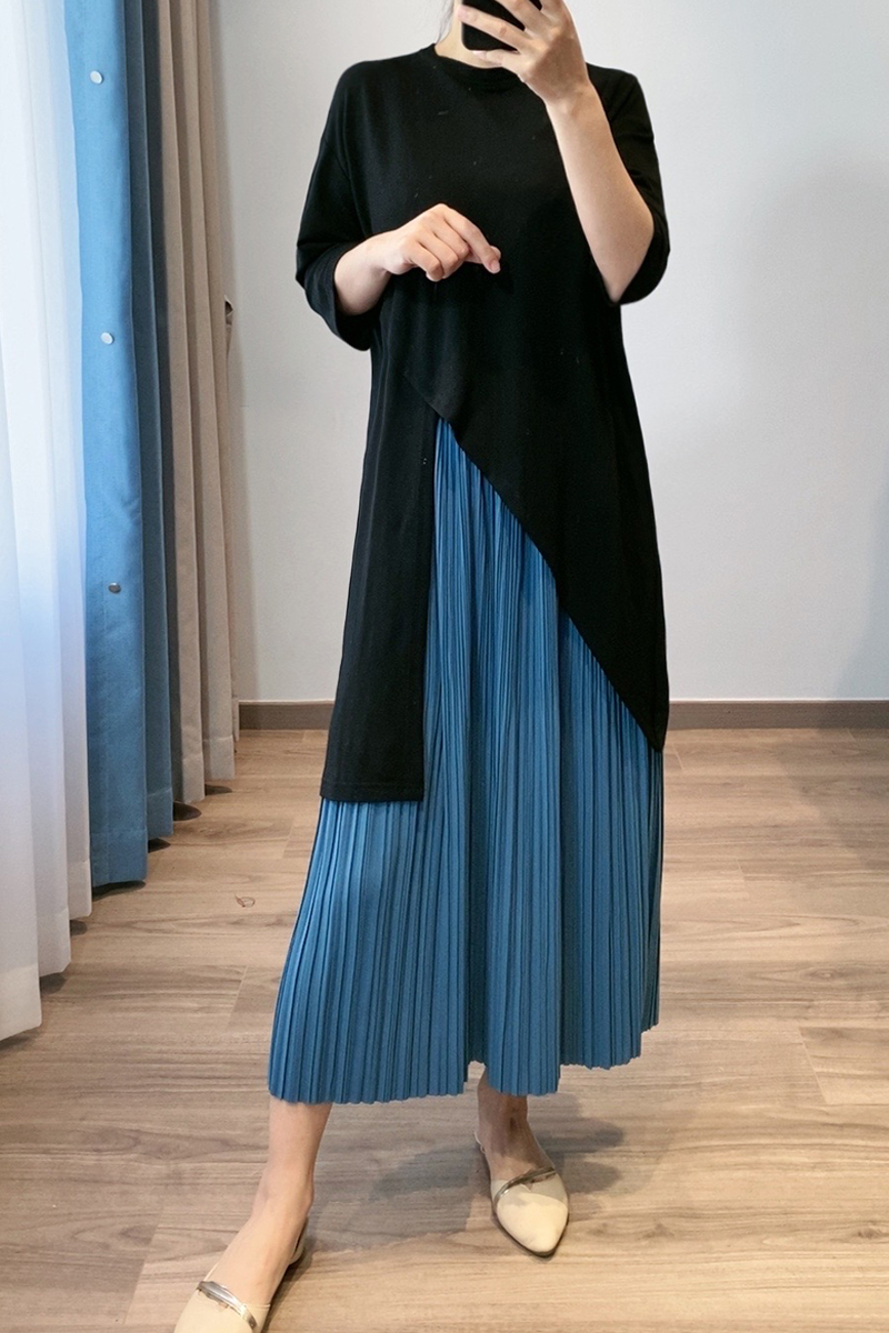 高品质 微胖mm显瘦遮肉连衣裙两件套装夏装女中长款T恤百褶半身裙