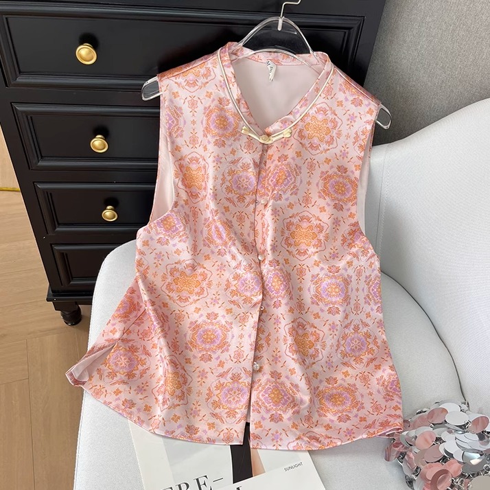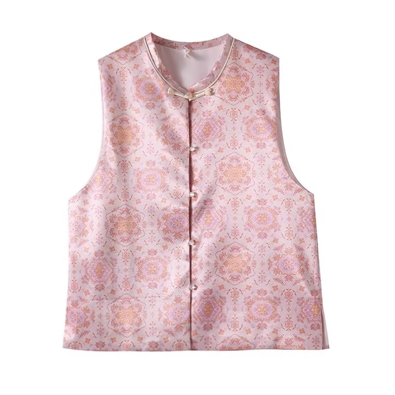 新中式国风粉色圆领无袖背心女2025年春新款气质时尚复古马甲外套