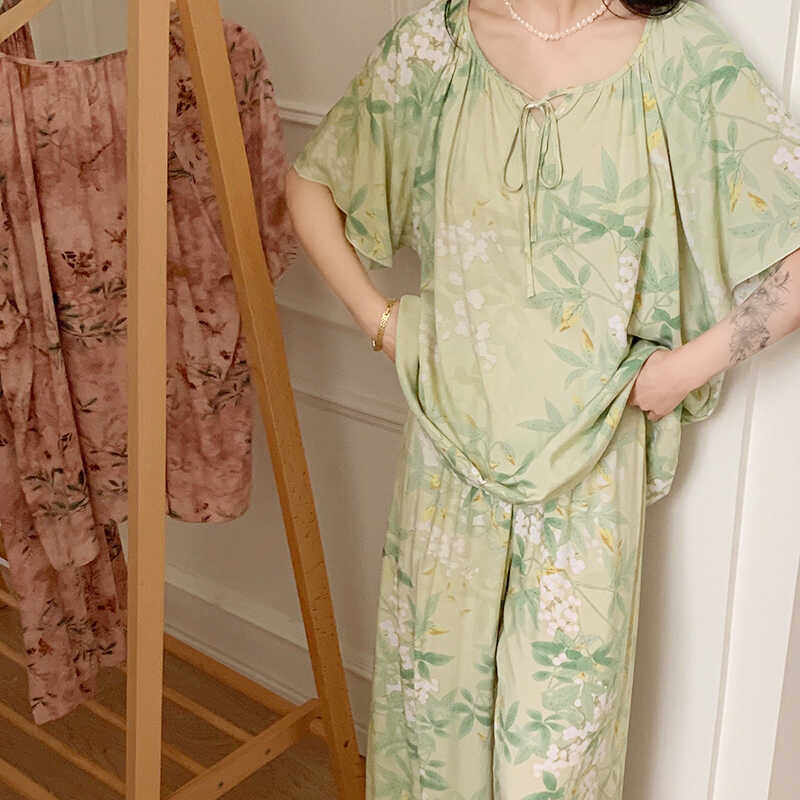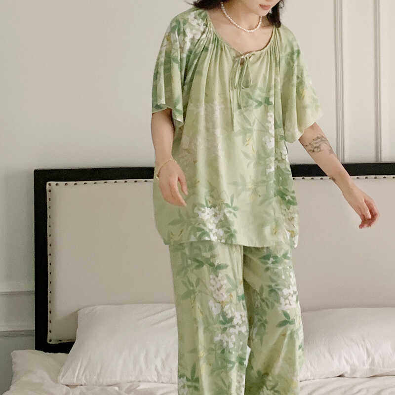 新中式棉绸睡衣女夏仙气春夏新款国风改良汉服短袖绵绸家居服套装