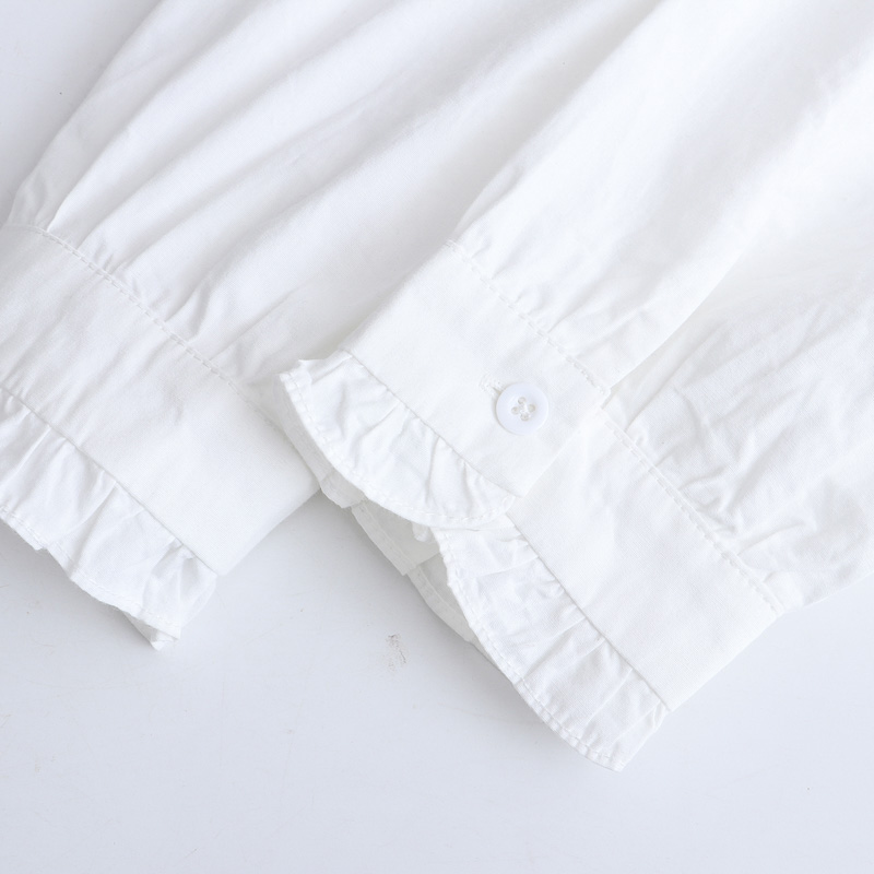 大码白色衬衫女2023春新款胖mm水洗棉木耳边立领文艺宽松休闲衬衣