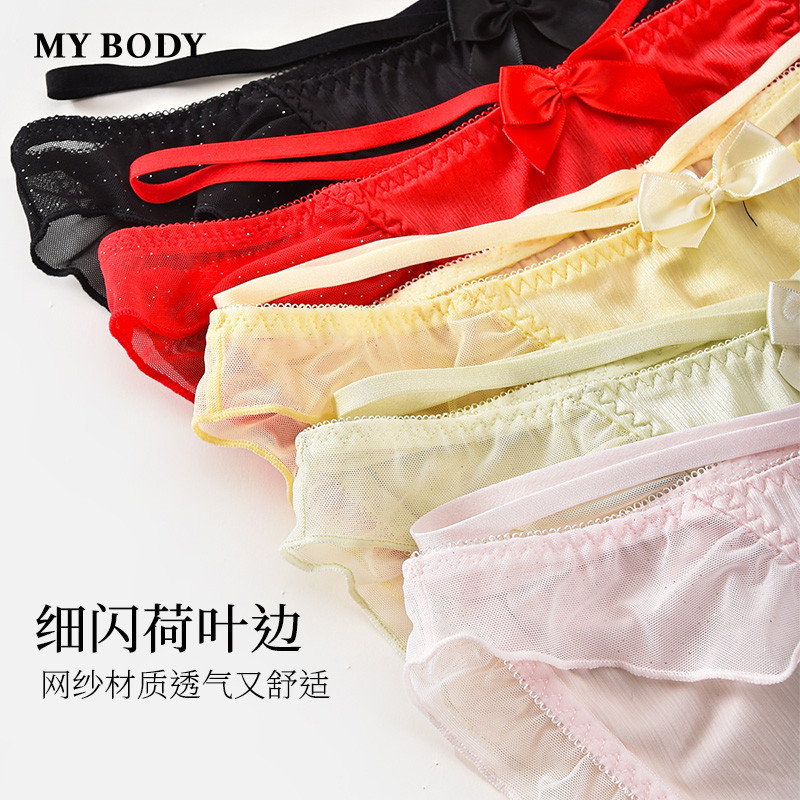 3件129|商场同款MYBODY新款纯欲少女荷叶边细带交叉可露腰内裤女