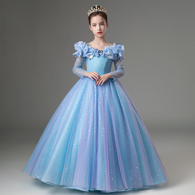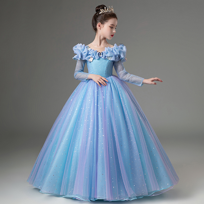 儿童礼服生日长袖灰姑娘公主裙秋冬小女孩主持人钢琴演出服装走秀