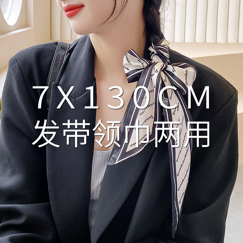 黑白窄长条小丝巾女春秋夏季丝带扎头编发带飘带腰带搭配衬衫领带