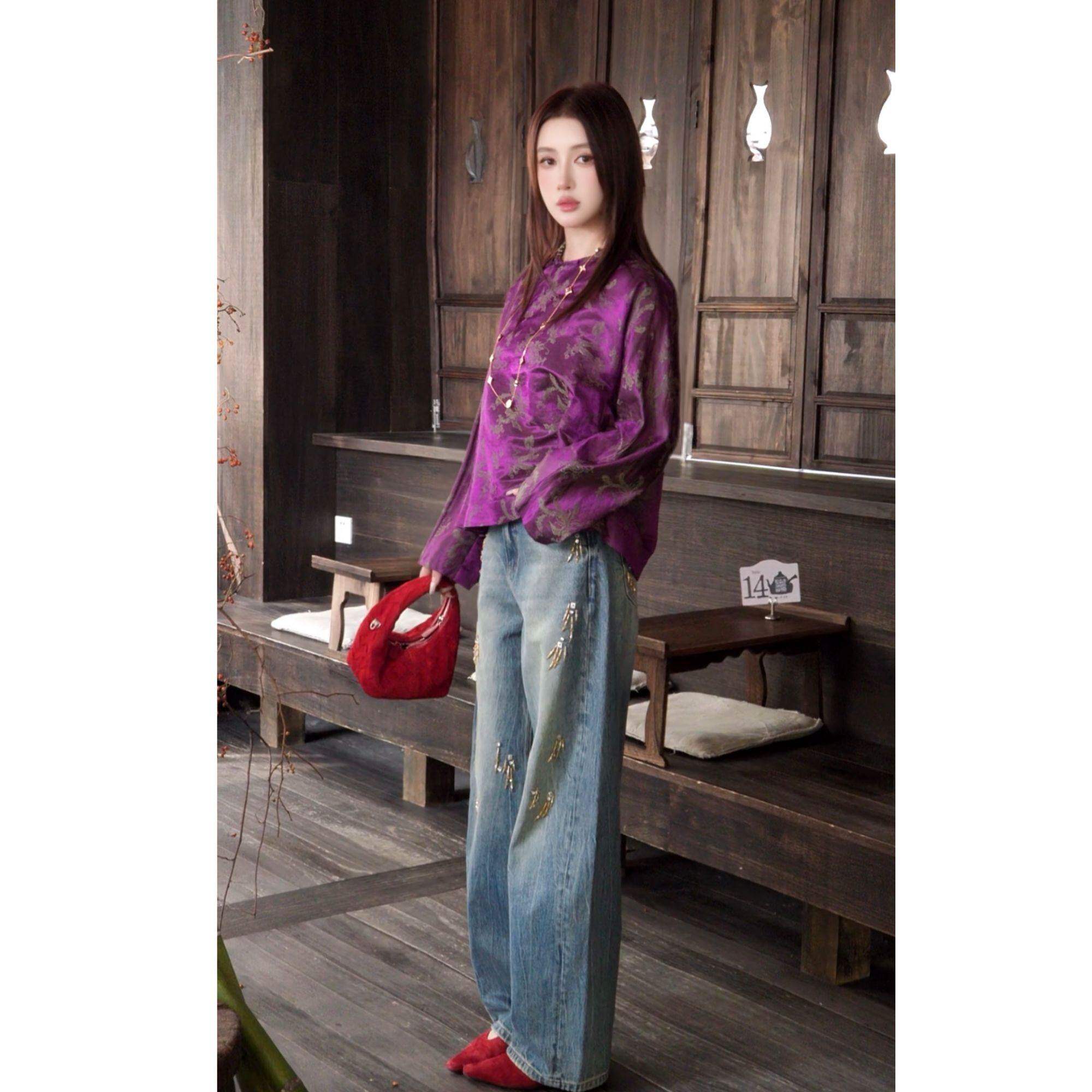 G.yantong【龙凤呈祥】提花圆领斜襟衬衫新款时尚上衣国风DD1289