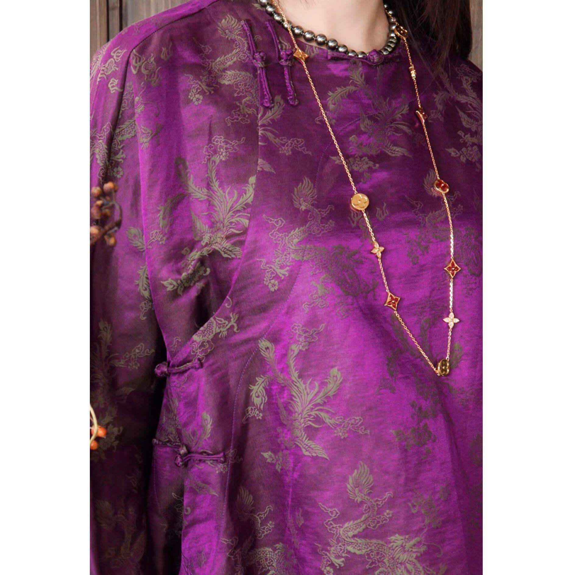 G.yantong龙凤呈祥提花斜襟衬衫