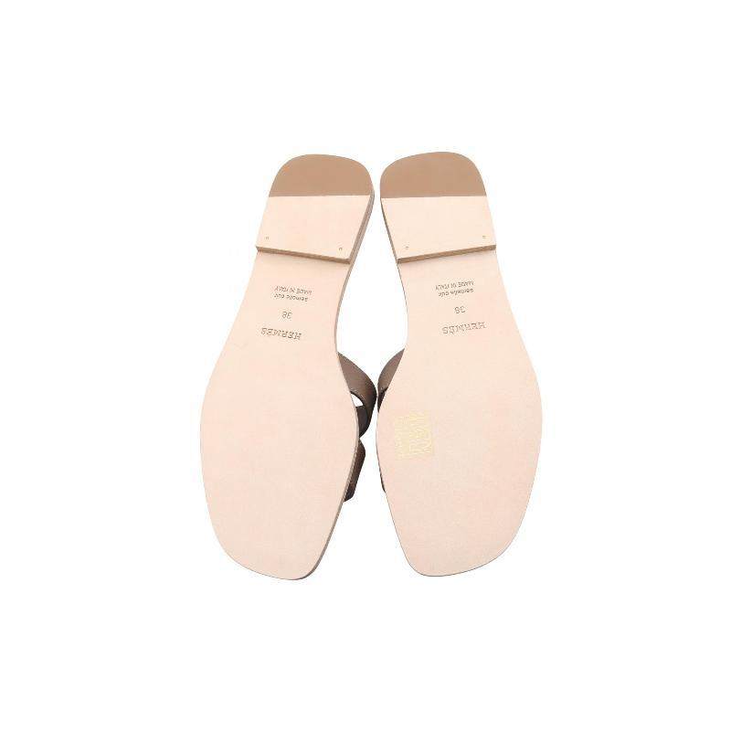 中古Hermes爱马仕女S级99新Mule穆勒鞋牛皮鞋灰色