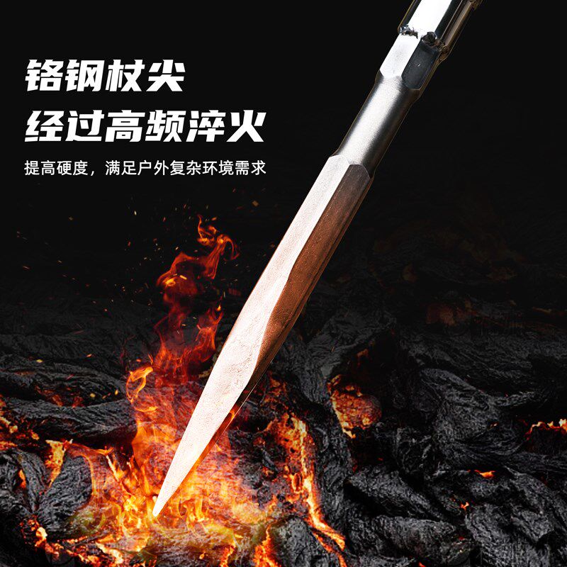 登山杖手杖户外防身棍徒步越野爬山拐杖探险冰镐高硬度实心杖尖