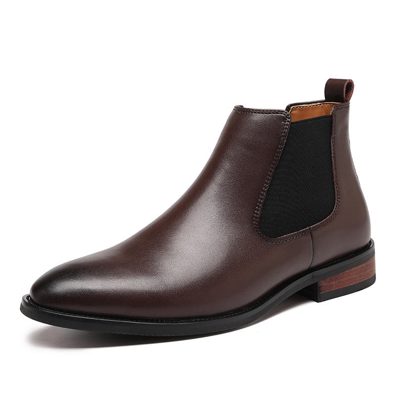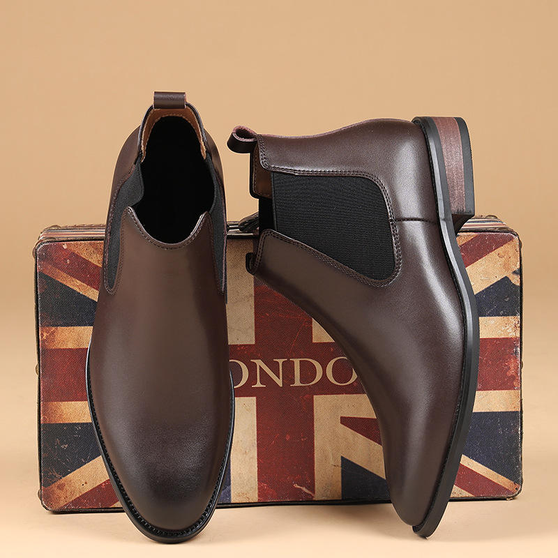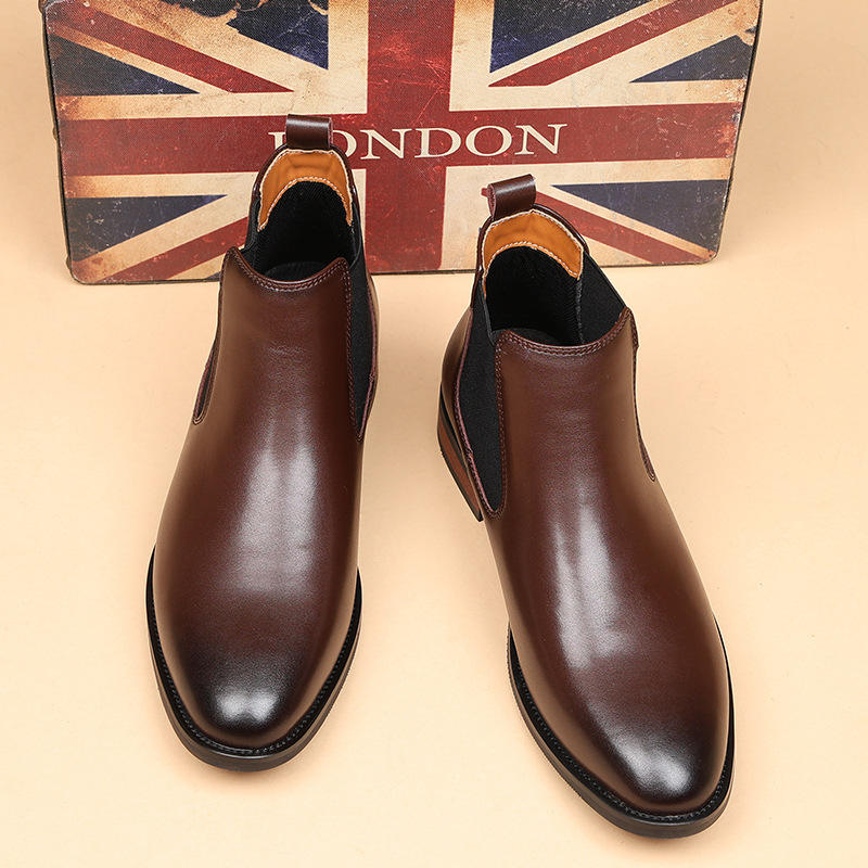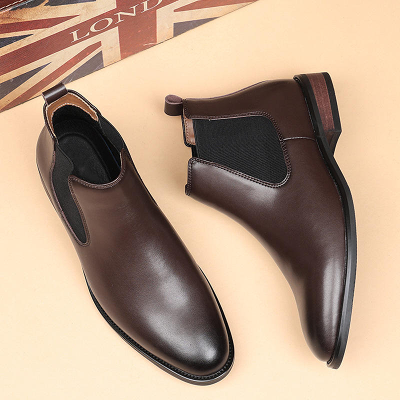 新款2025英伦切尔西靴男尖头商务休闲高帮皮鞋复古短靴增高马丁靴