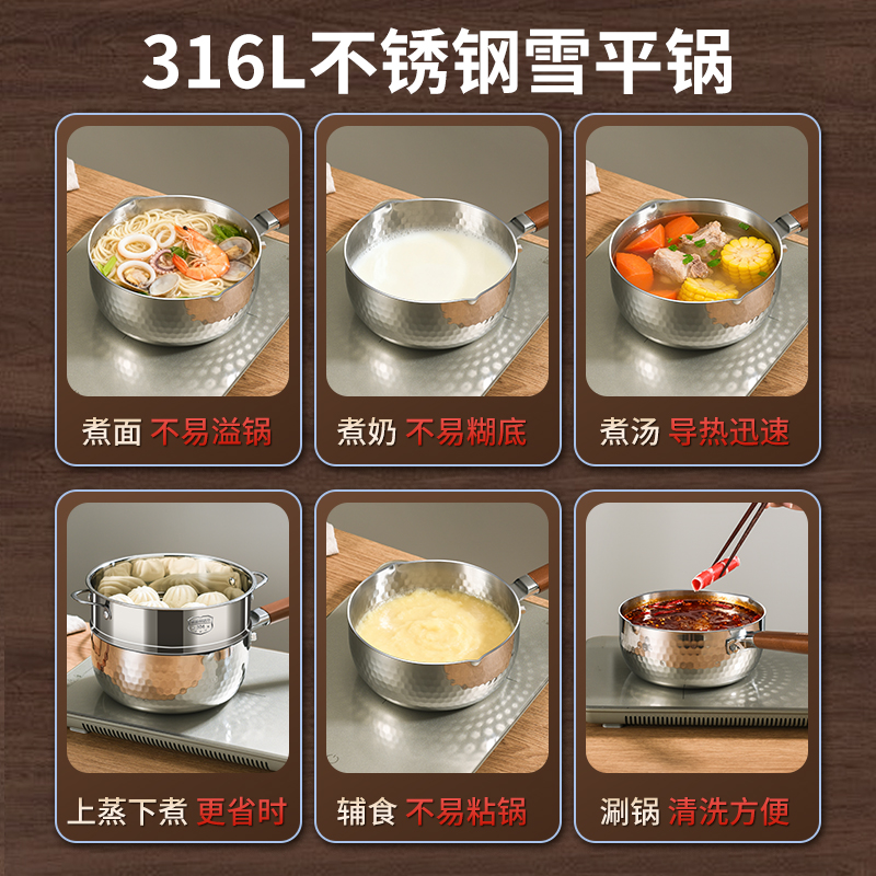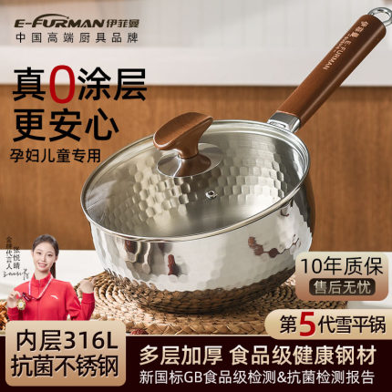 伊菲曼316L加厚不锈钢雪平锅无涂层奶锅小锅日式辅食蒸煮泡面汤锅