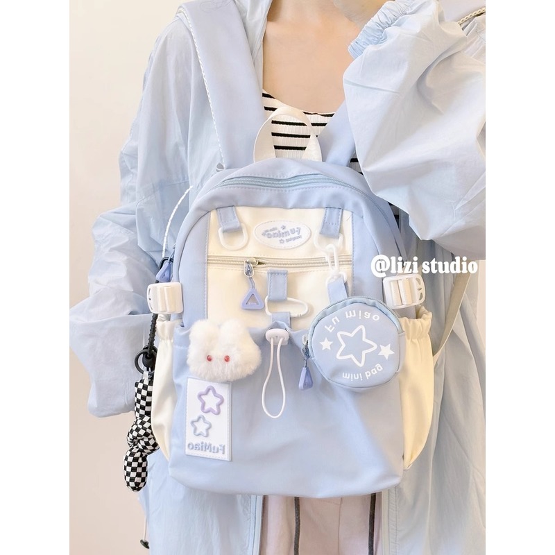 法国MlcanIKans日系可爱女撞色背包迷你双肩包星星初中生书包旅行