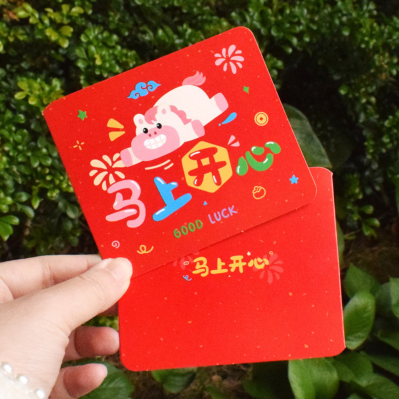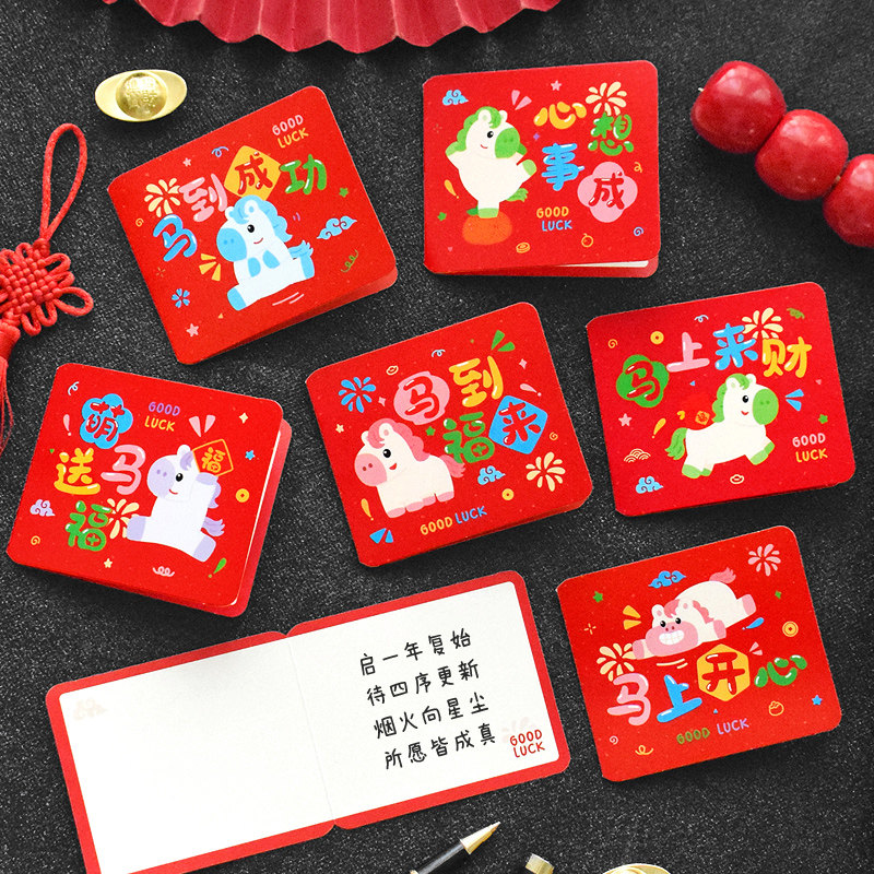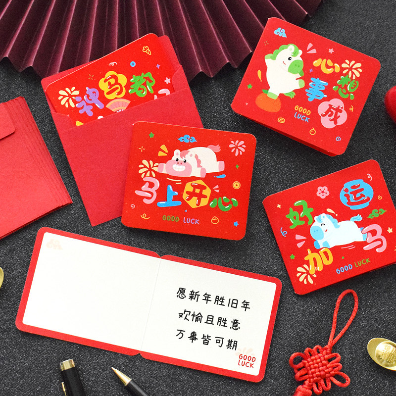 2026好运加马元旦新年折叠贺卡马年红色可爱卡通祝福留言卡片纸幼儿园儿童小学生心愿礼物对折手写愿望材料包
