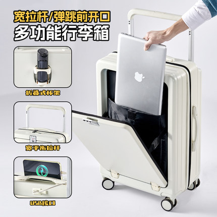 弹跳式前置开口宽拉杆行李箱女20寸登机箱万向轮男密码箱24多功能