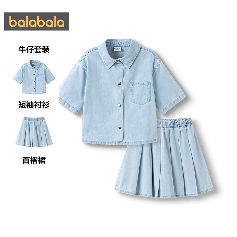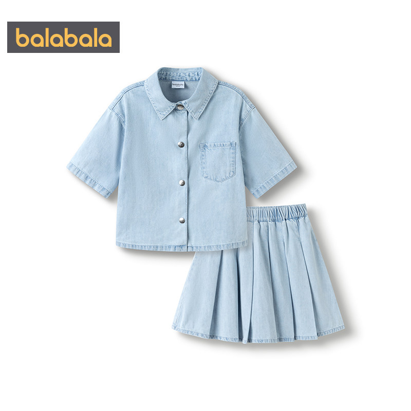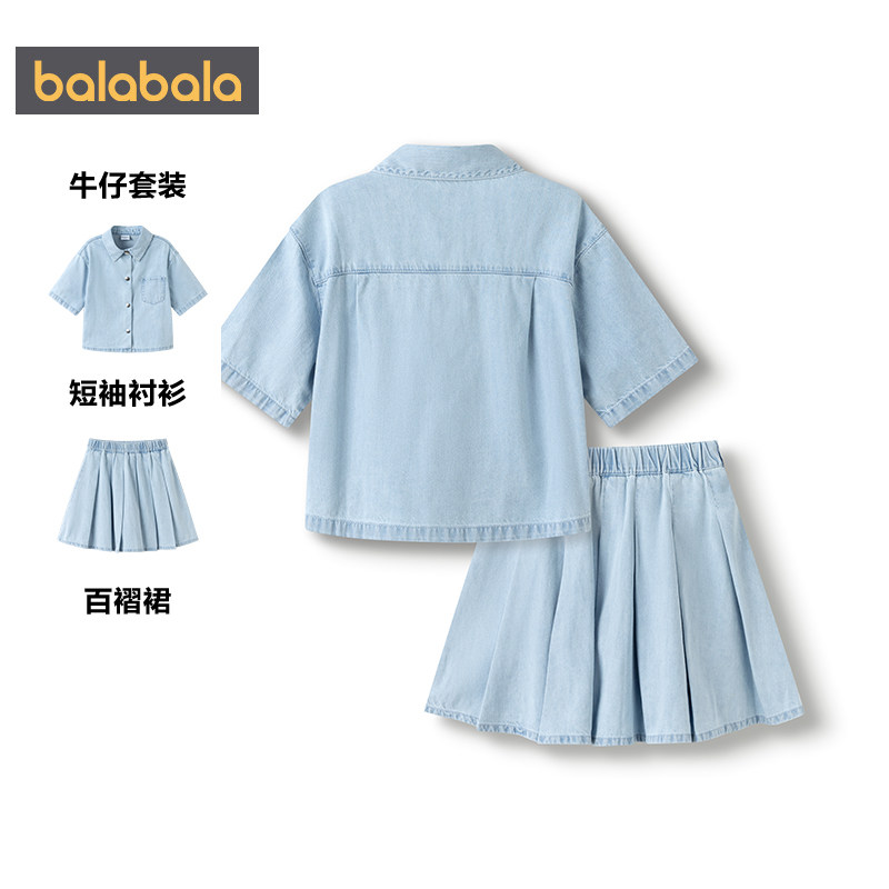 【商场同款】巴拉巴拉女童牛仔套装中大童裙子衬衫两件套夏装儿童