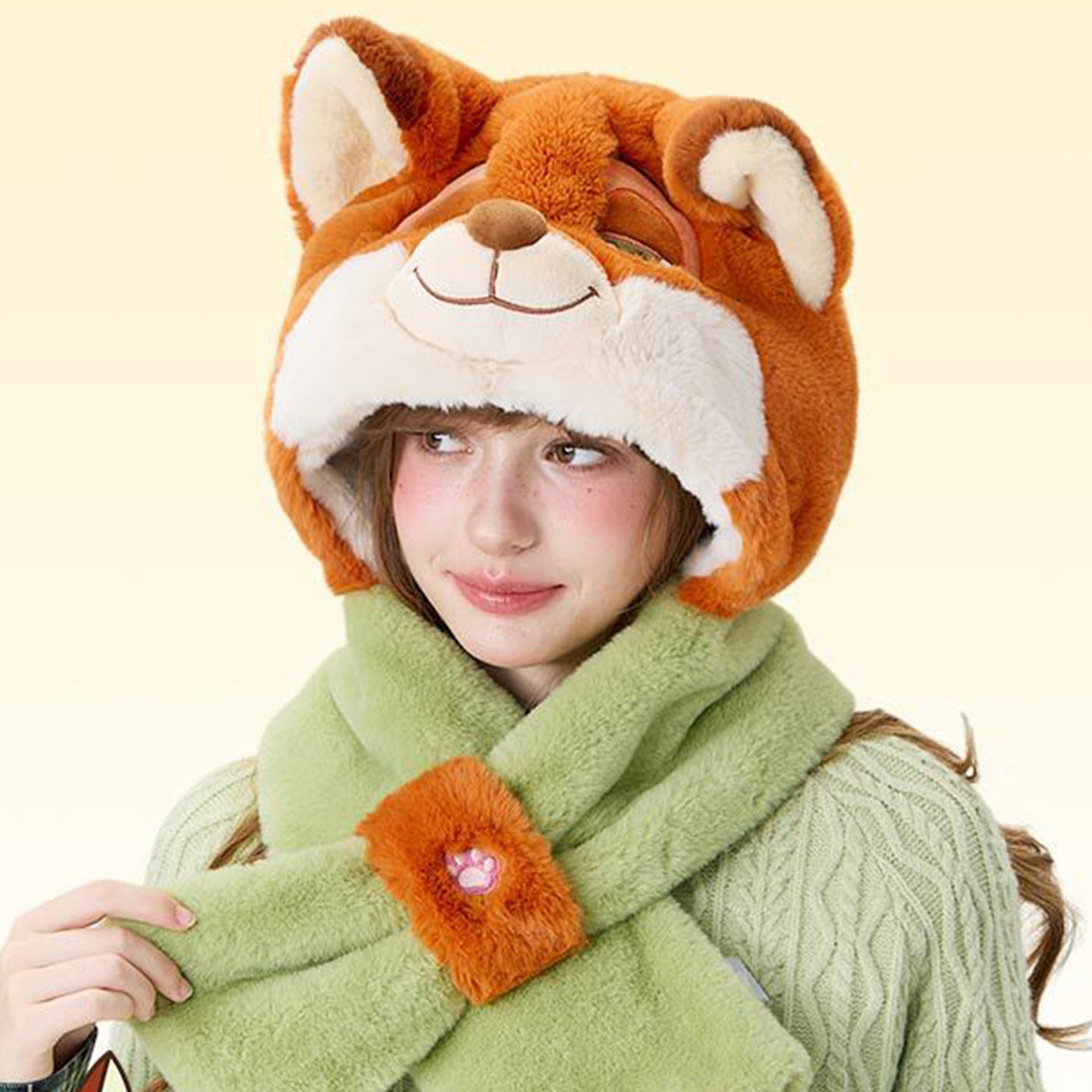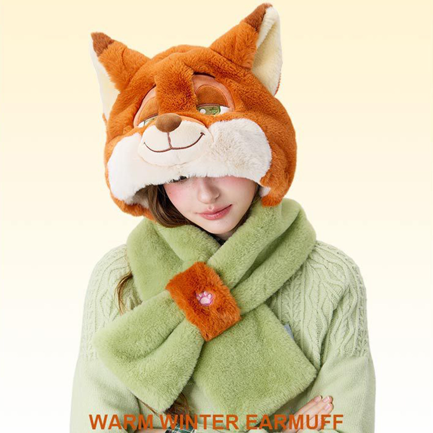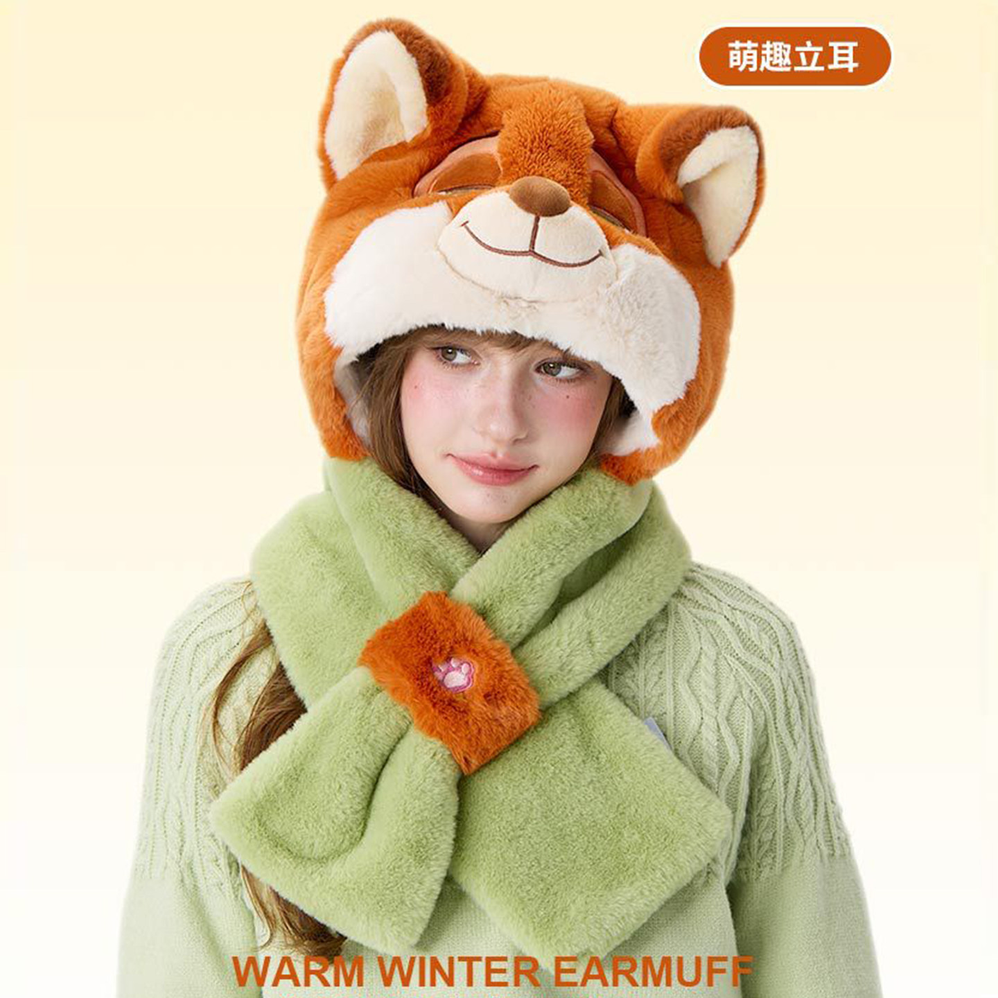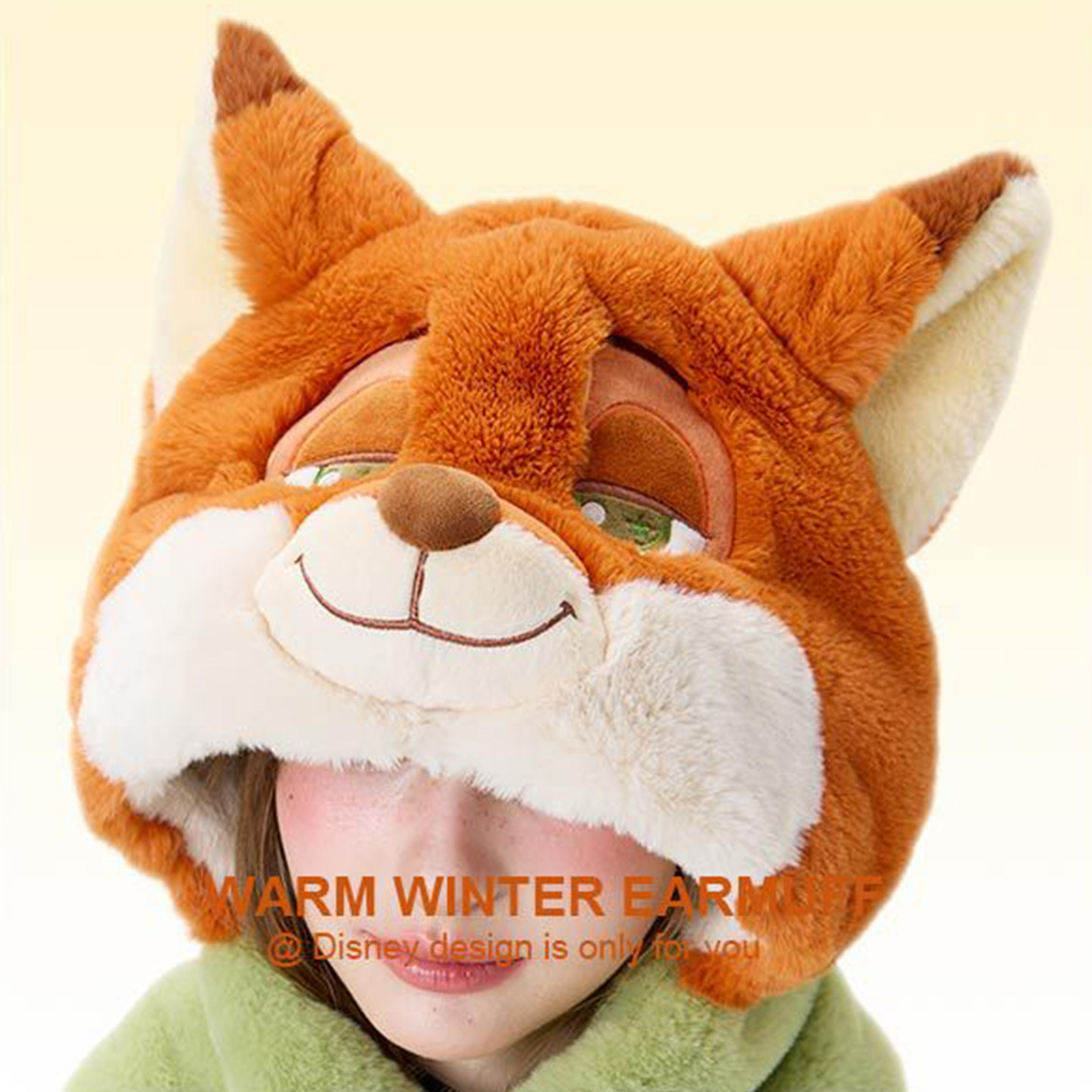 正版迪士尼朱迪尼克疯狂动物城帽子秋冬女包头帽子围巾一体两件套