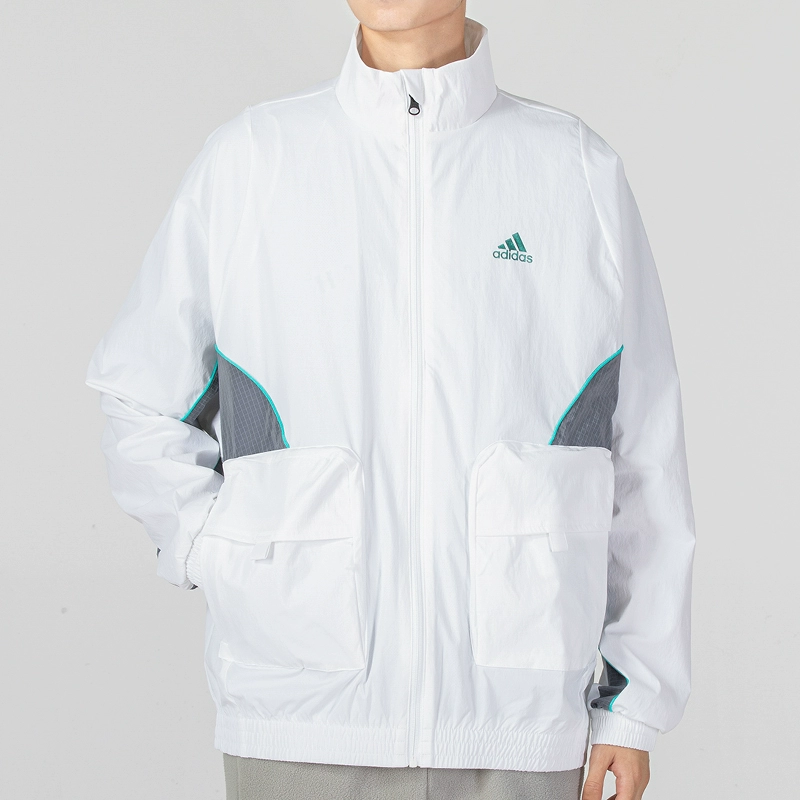 正品ADIDAS/阿迪达斯外套男子运动服宽松白色休闲立领夹克HM5146