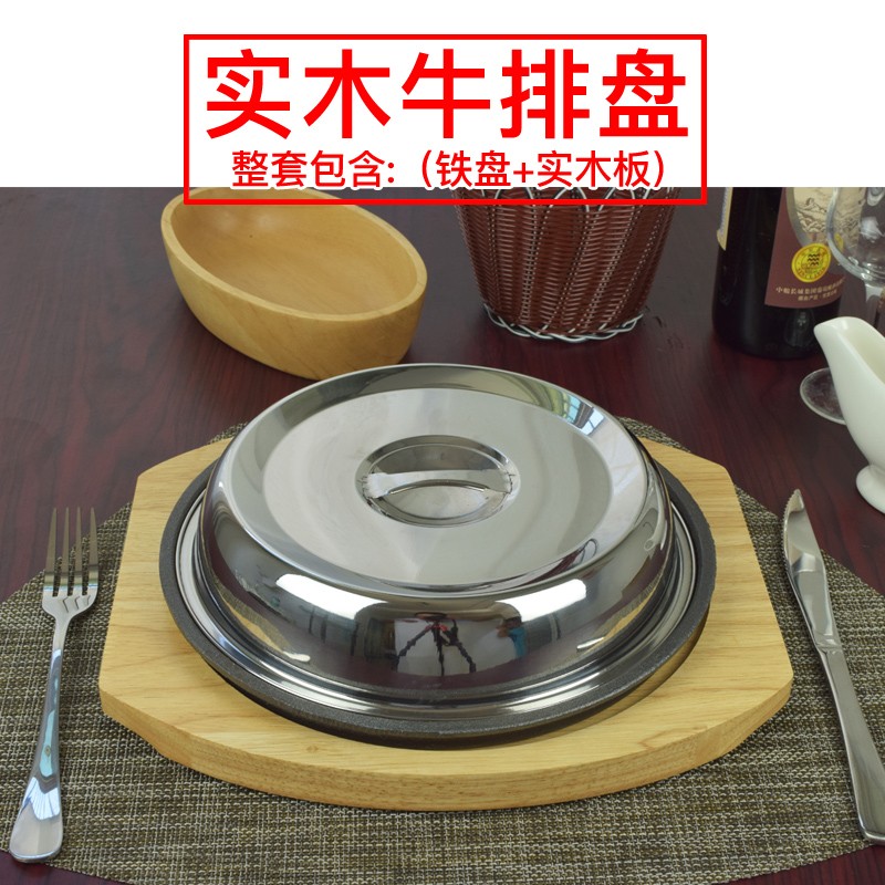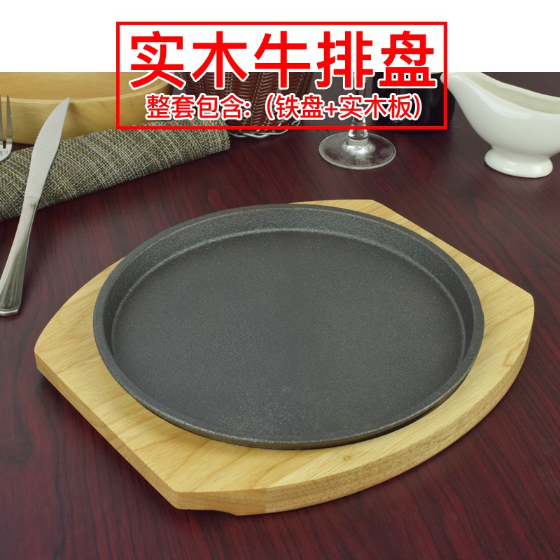 铁板烧盘铸铁大号肉牛排圆形加厚烧烤盘铁板烧P铁板商用不粘锅家