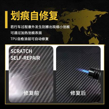 汽车碳纤维贴膜进口TPU改色膜高亮5D改装机盖车顶碳纤维自修复膜