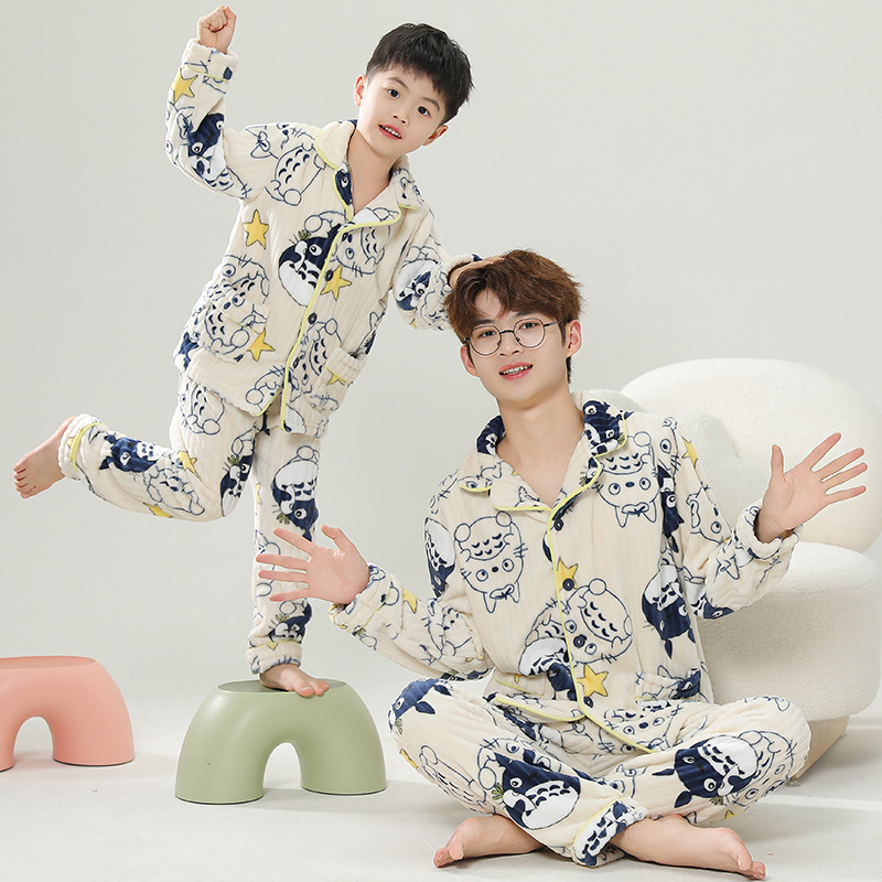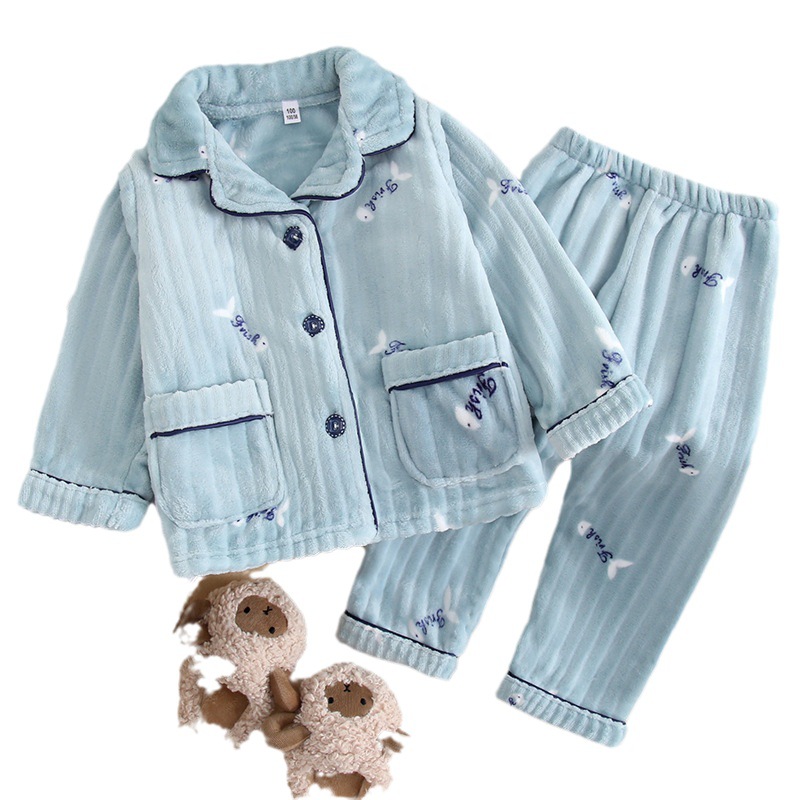 秋冬季儿童珊瑚绒睡衣男童加厚冬款法兰绒男孩家居服女童宝宝套装