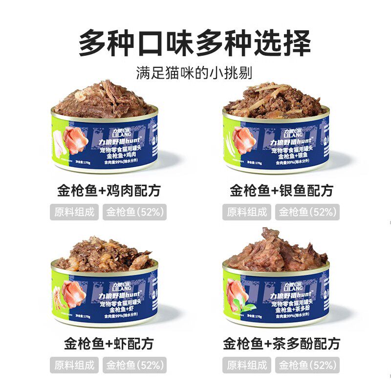 力狼猫罐头猫咪零食补充营养金枪鱼肉成幼猫湿粮主食大罐170g12罐