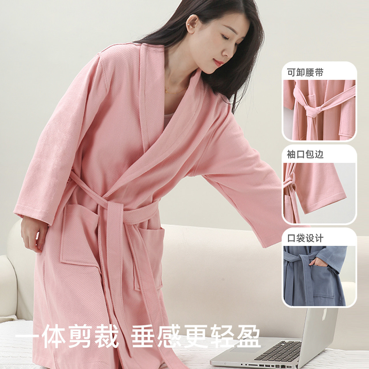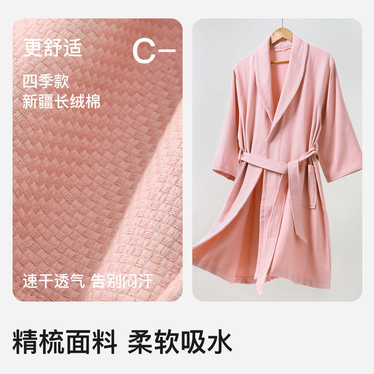 金号纯棉浴衣日式和风浴袍家居服 新疆棉情侣系带式素色吸水A类