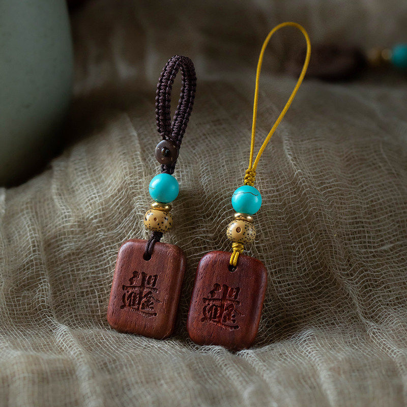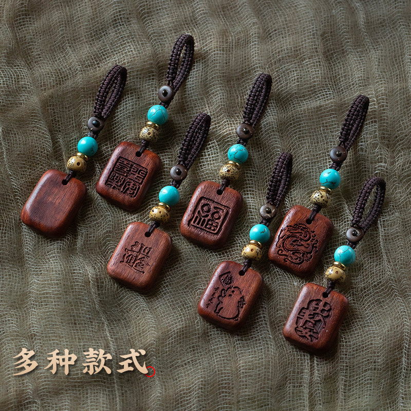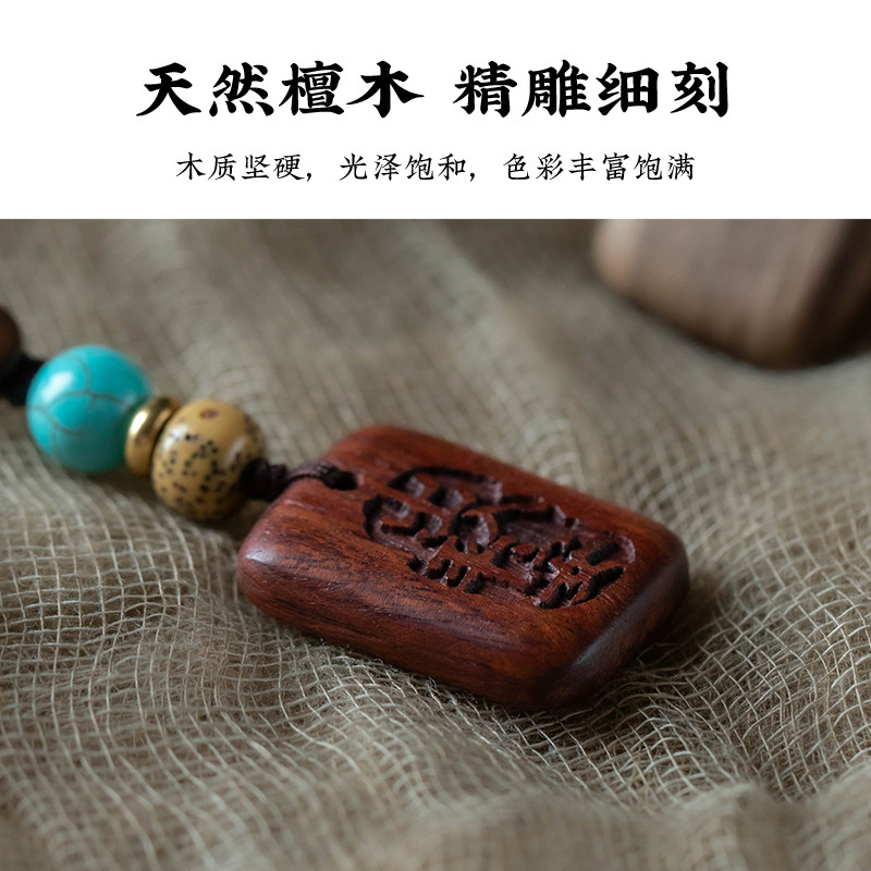 檀木无事牌汽车钥匙扣挂件