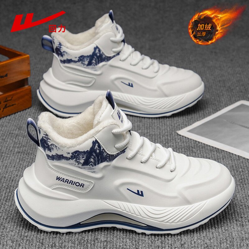 回力男鞋冬季加绒运动鞋防滑百搭厚底减震学生增高篮球老爹鞋棉鞋