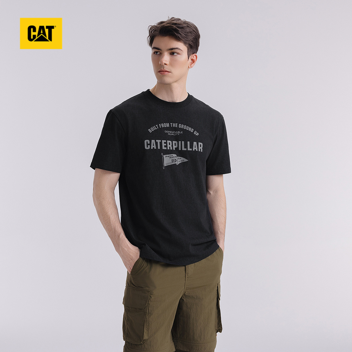 CAT卡特25夏季新品男士户外休闲简约纯棉圆领短袖全棉标语T恤