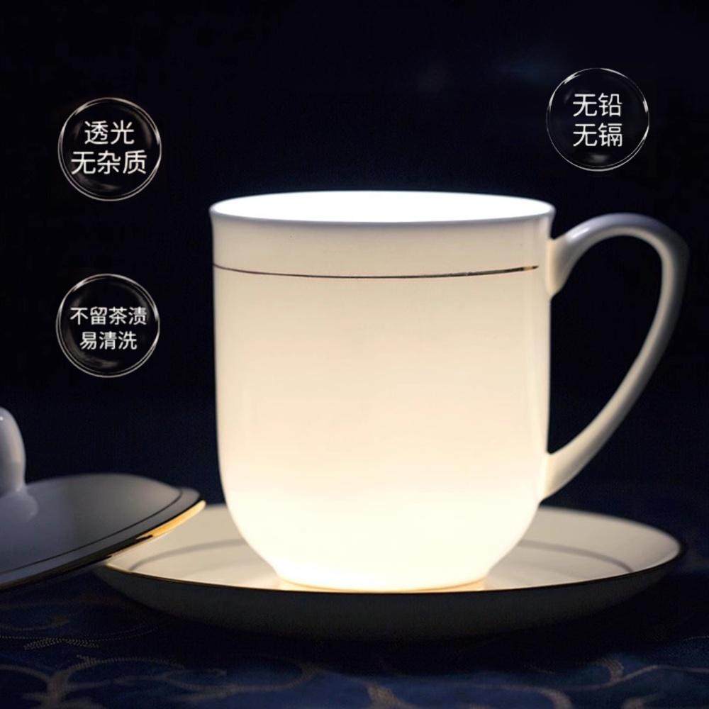 景德镇陶瓷杯子带盖茶杯水杯办公杯瓷器定制酒店会议室泡茶杯子