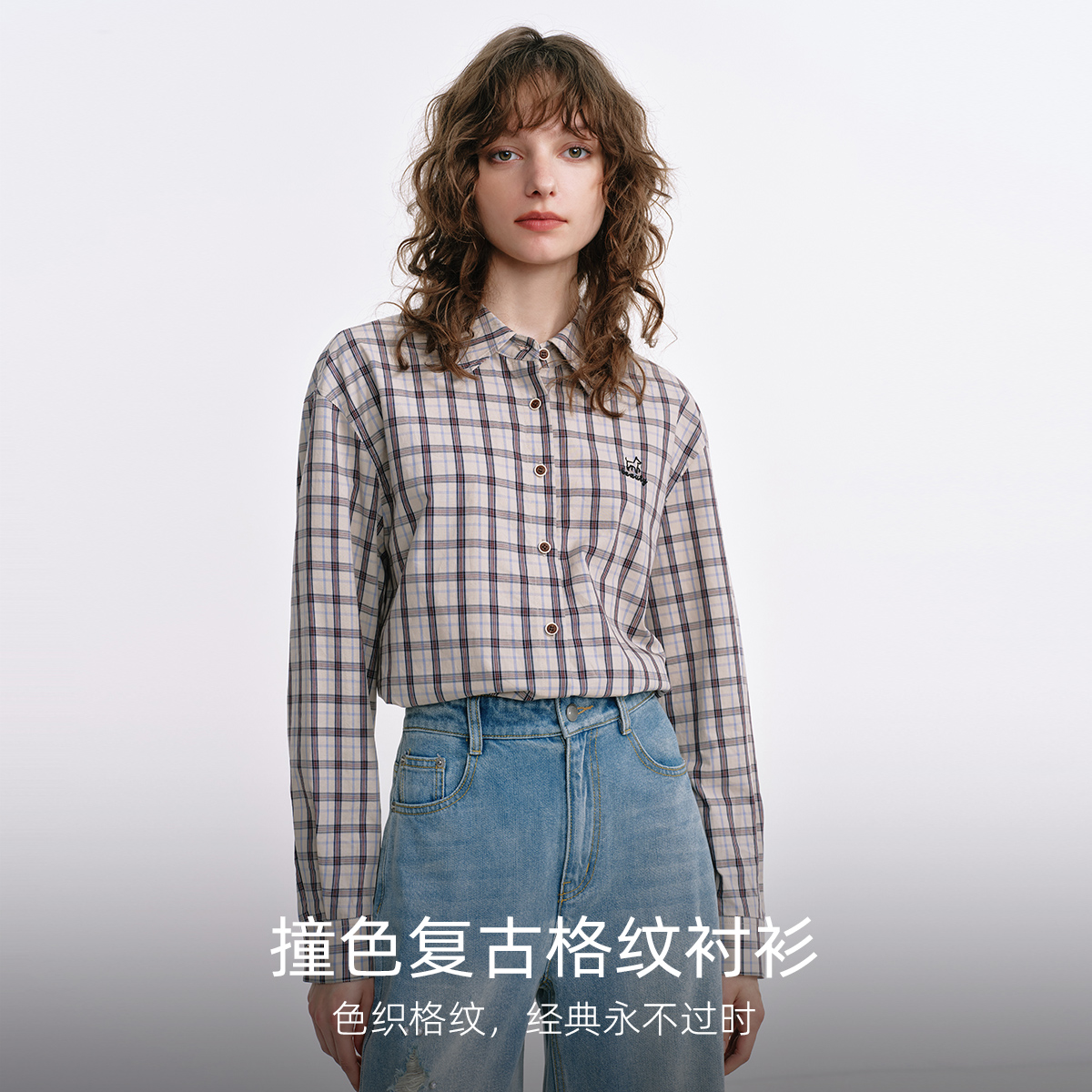 KBNE米兰格纹衬衫纯棉气质衬衣女2025秋季新款长袖上衣学院风小衫
