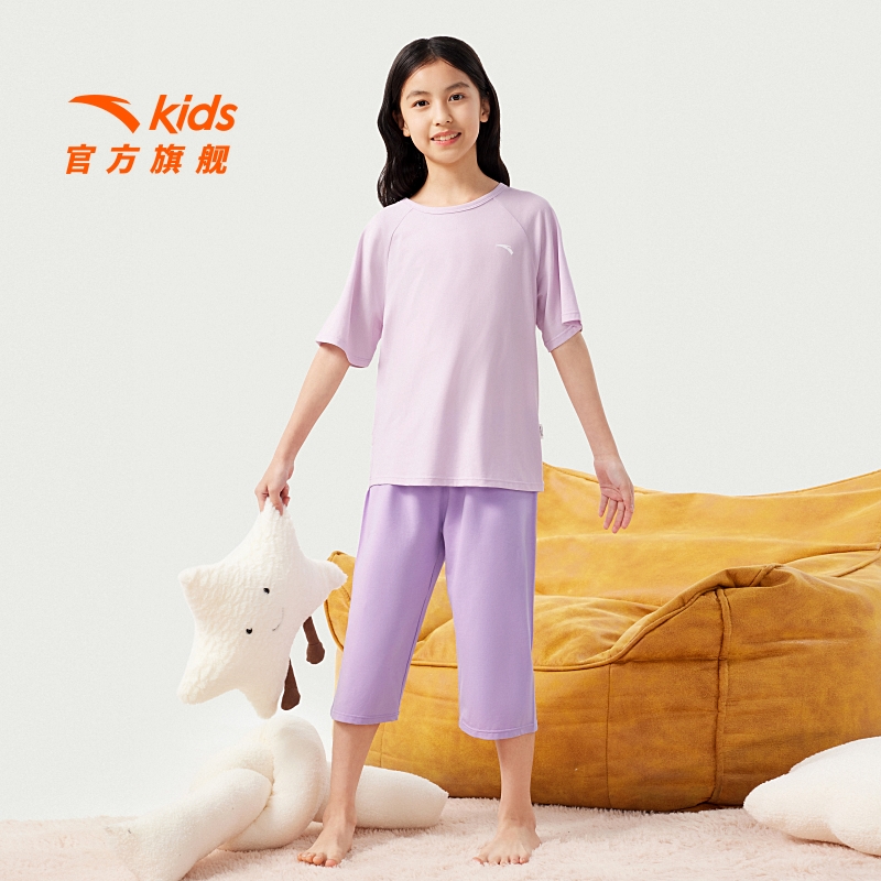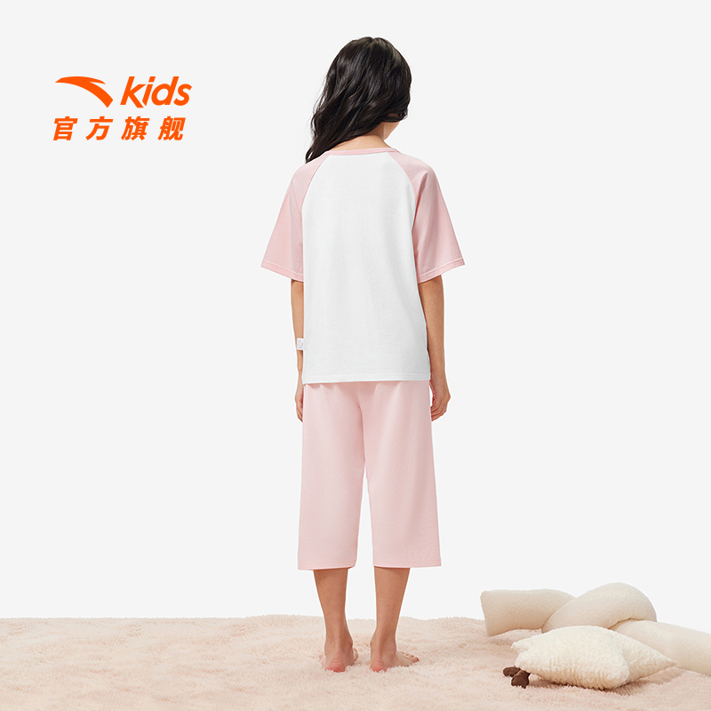 安踏儿童睡衣女童家居服套装2025春夏新款舒适亲肤中大童短袖长裤