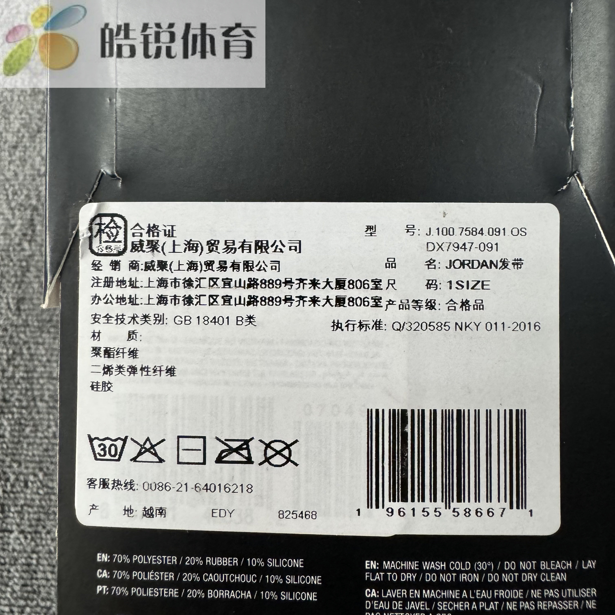Nike Air Joran耐克AJ男女瑜伽跑步休闲运动头带发带DX7947-091