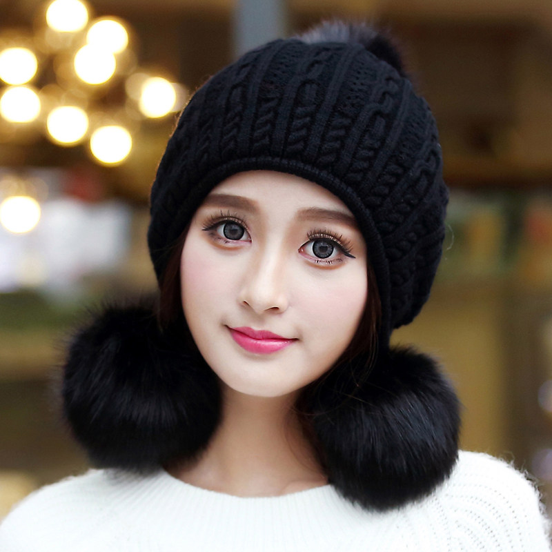 帽子女冬天韩版贝雷帽保暖针织毛线帽 青年秋冬季时尚加厚护耳帽