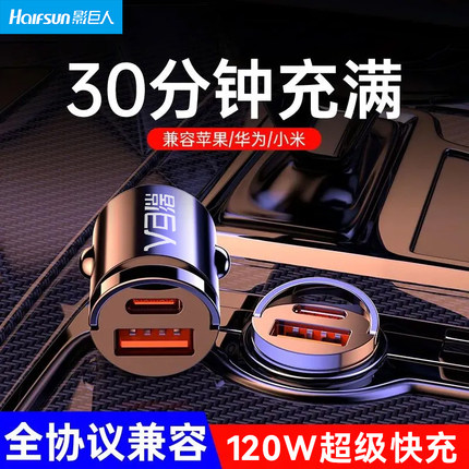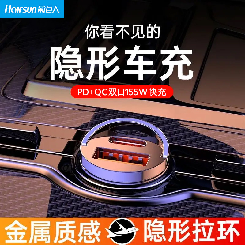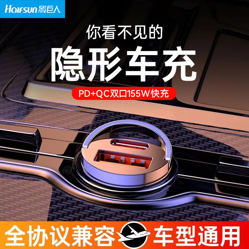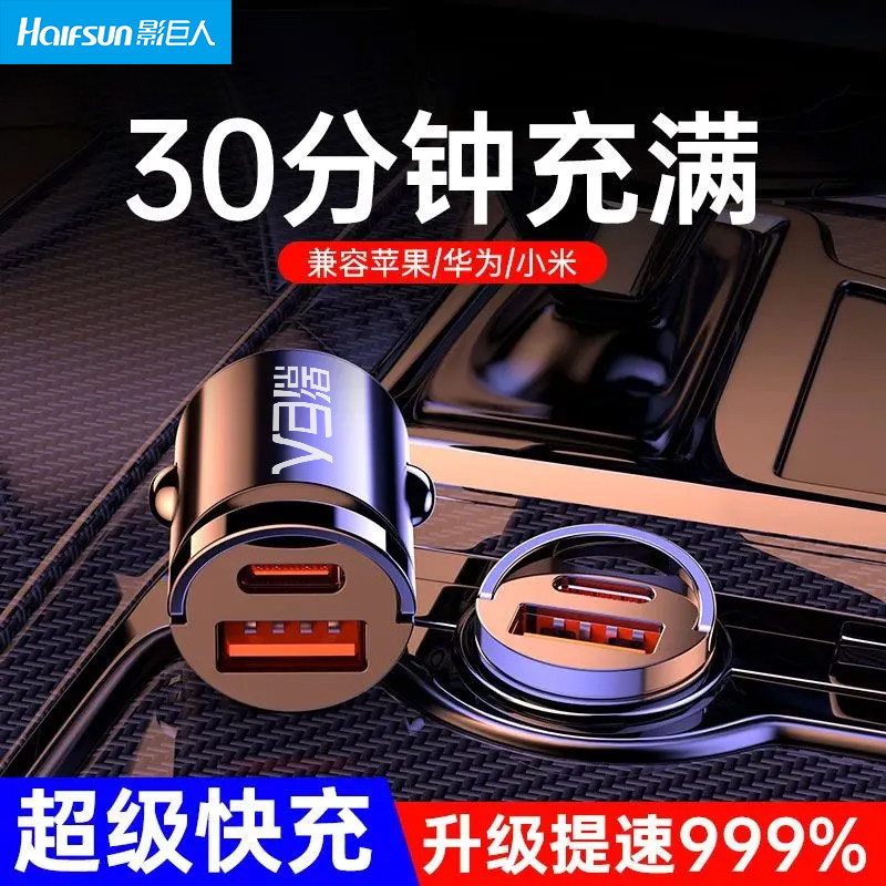 影巨人120W隐形车载充电器66W超级快充汽车点烟器一拖二苹果15pd