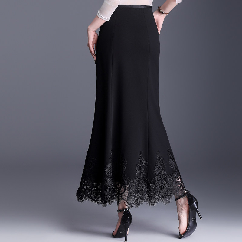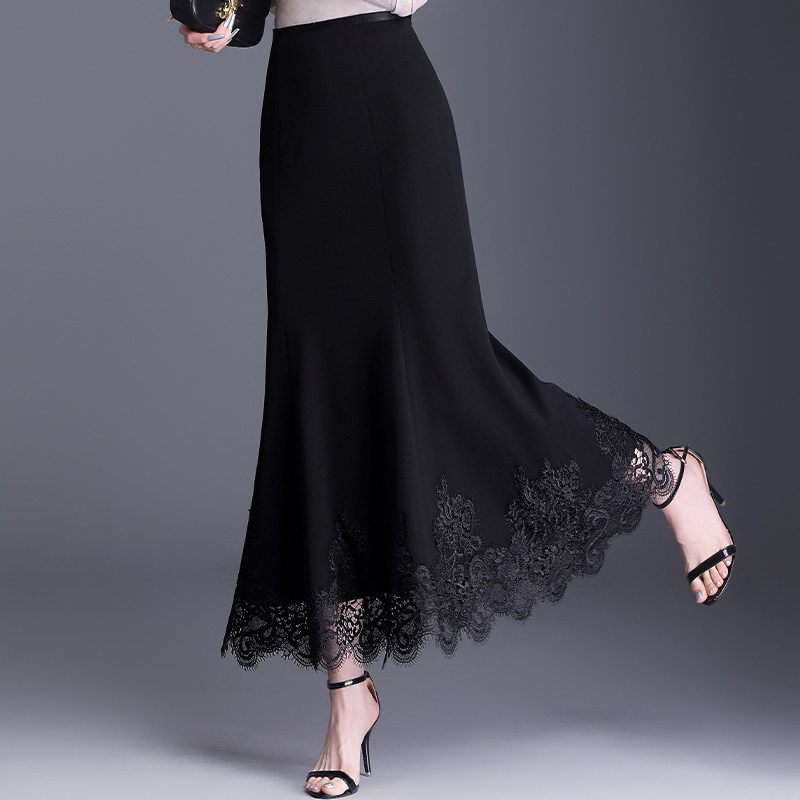 黑色蕾丝鱼尾裙半身裙女2025秋冬新款高腰包臀裙气质显瘦一步长裙