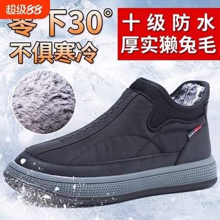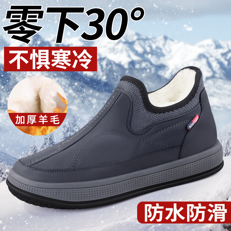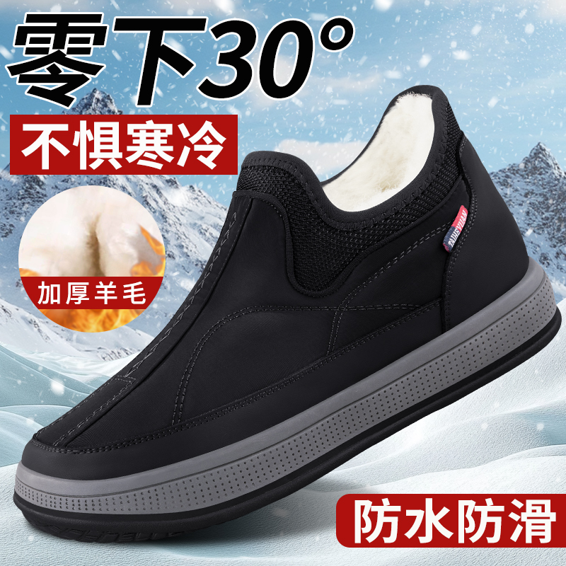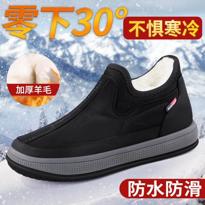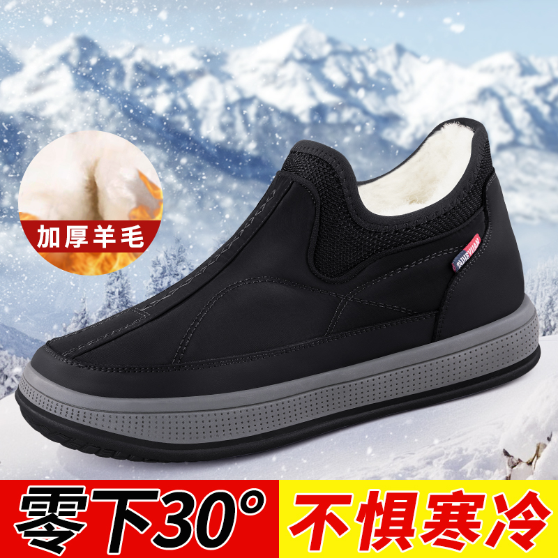 老北京布鞋男冬季2024新款加绒加厚棉鞋一脚蹬防滑爸爸保暖雪地靴