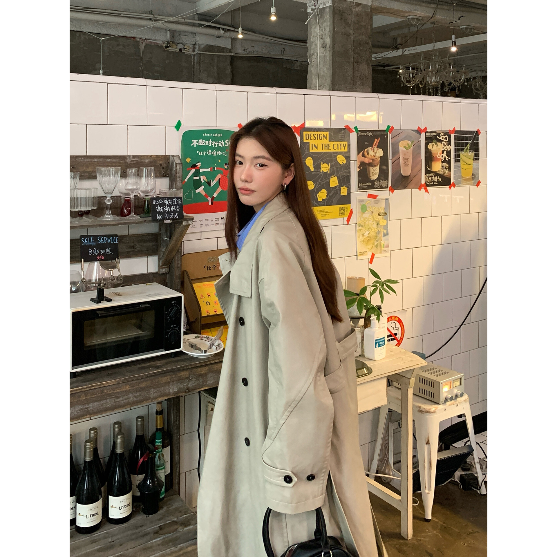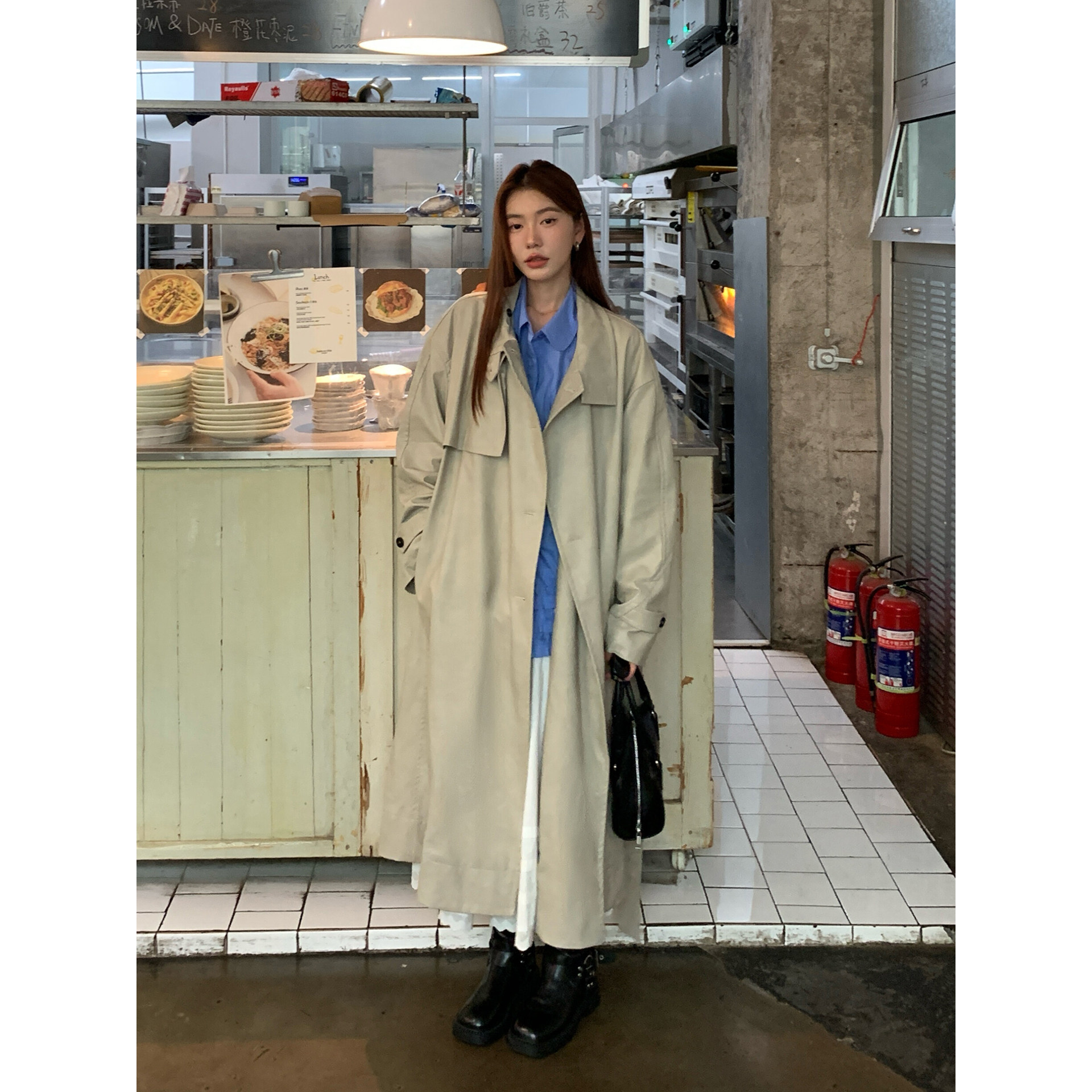 HaloLuu灰白色油蜡皮风衣外套